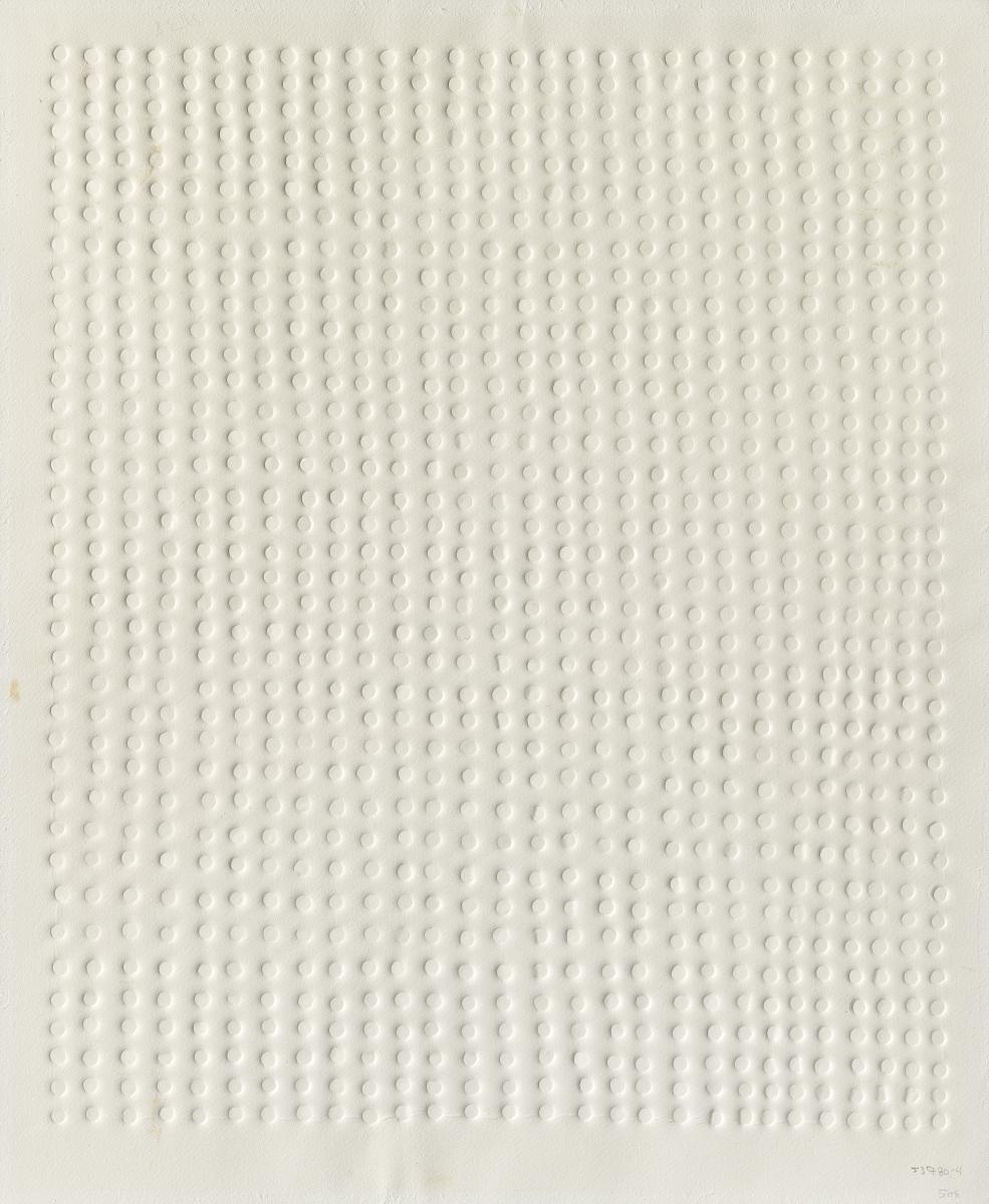Ohne Titel. Prägedruck auf Velin. 53 x 44cm (59,5 x 49,5cm). Signiert. Rahmen. - Umlaufend Spuren alter Montierung.