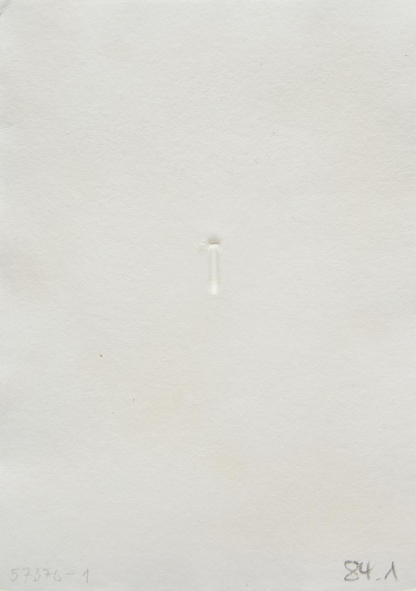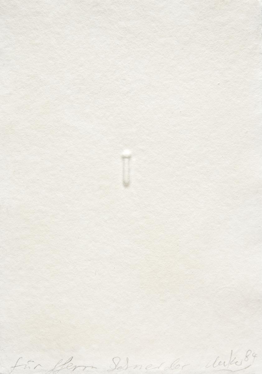 Aus: "Uecker - Grenzverhältnisse". 1985. Prägedruck auf handgeschöpftem Bütten. 2 x 0,5cm (23 x 16,5cm). Signiert, datiert (84) und gewidmet. Erker Presse, St. Gallen (Hrsg.).