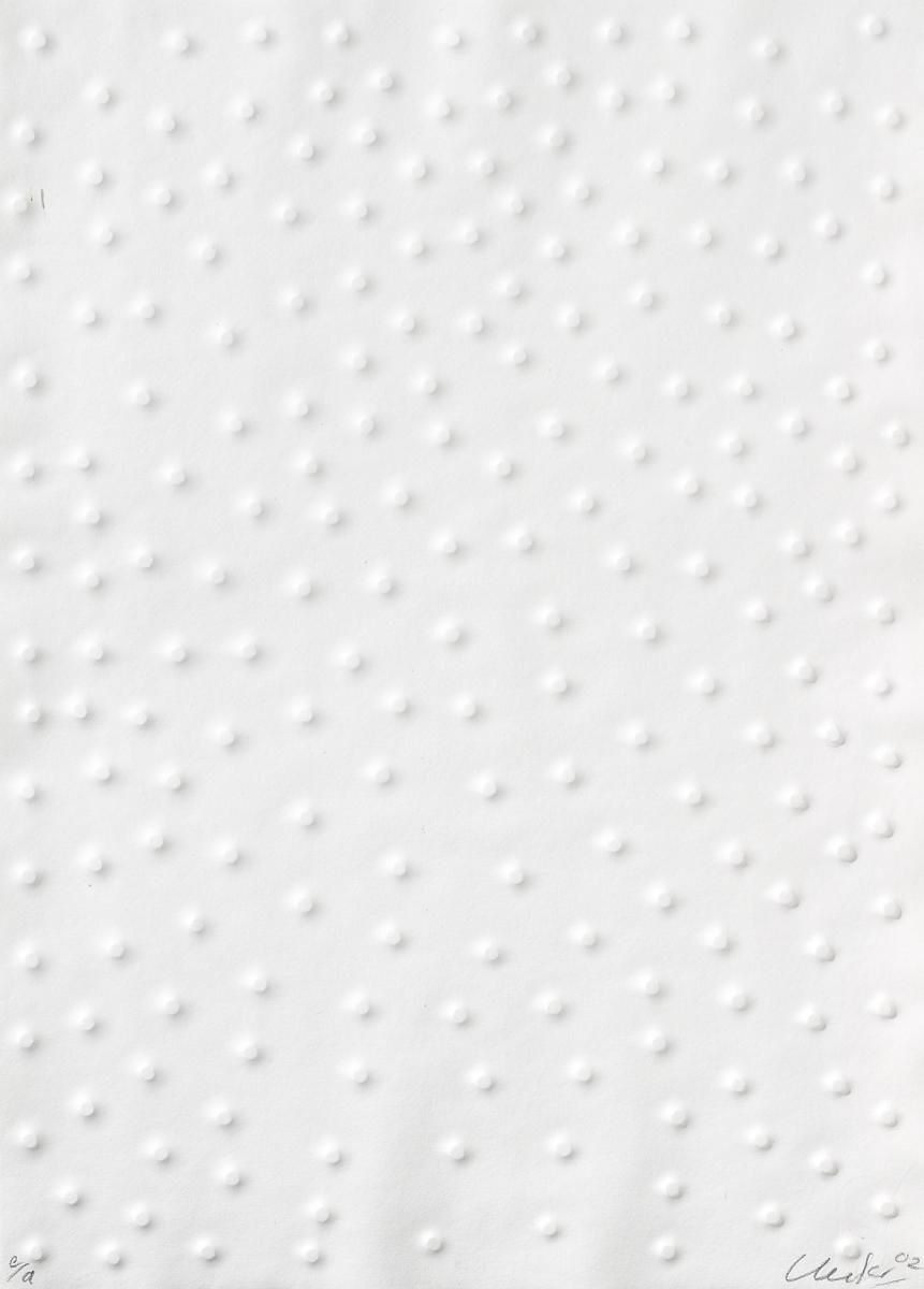 Das Geschenk Gottes. 2002. Prägedruck auf handgeschöpftem Bütten. 65,5 x 46cm (70 x 50cm). Signiert, datiert und bezeichnet. Ex. e.a. Rahmen. - Blatt druckbedingt gewellt. Verso montiert. Ansonsten in sehr gutem Zustand. Im Rahmen beschrieben.