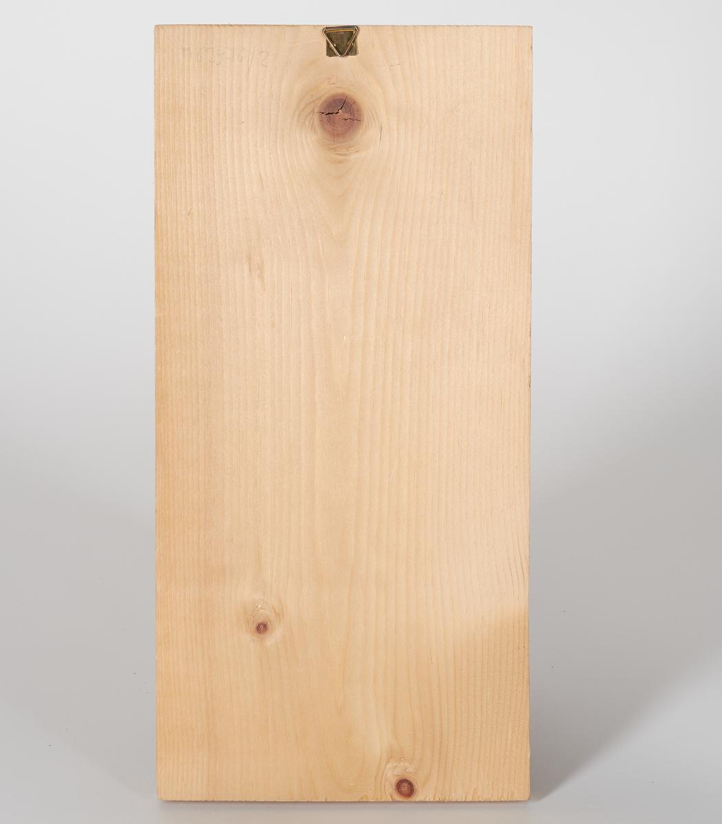 Minimale Verschmutzung im unteren Zentrum. Vereinzelte kleinere Bestoßungen im Weichholz. Verso minimale Absplitterungen an der unteren Kante des Weichholzes. Ansonsten befindet sich das Multiple in einem sehr guten Zustand