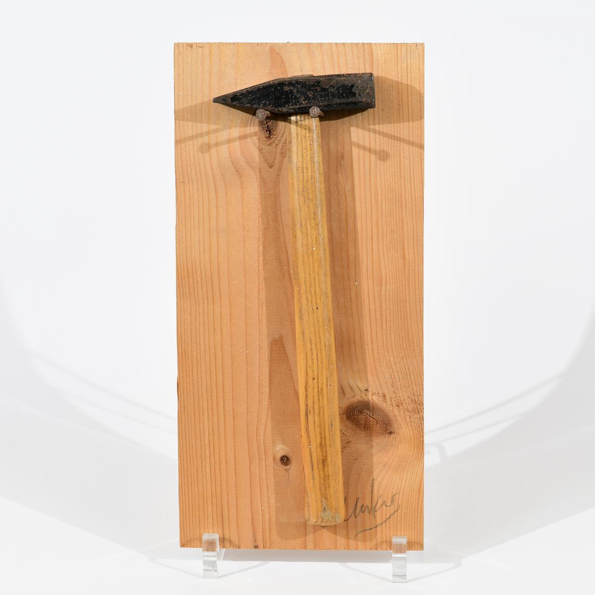 Do it yourself. 1969. Hammer (DIN 1041) und 2 Nägel auf Weichbrettholz, mit Aufhänger34 x 16,5 x 7cm. Signiert in Bleistift unten rechts: Uecker. Ex. Unlimitiertes Multiple.