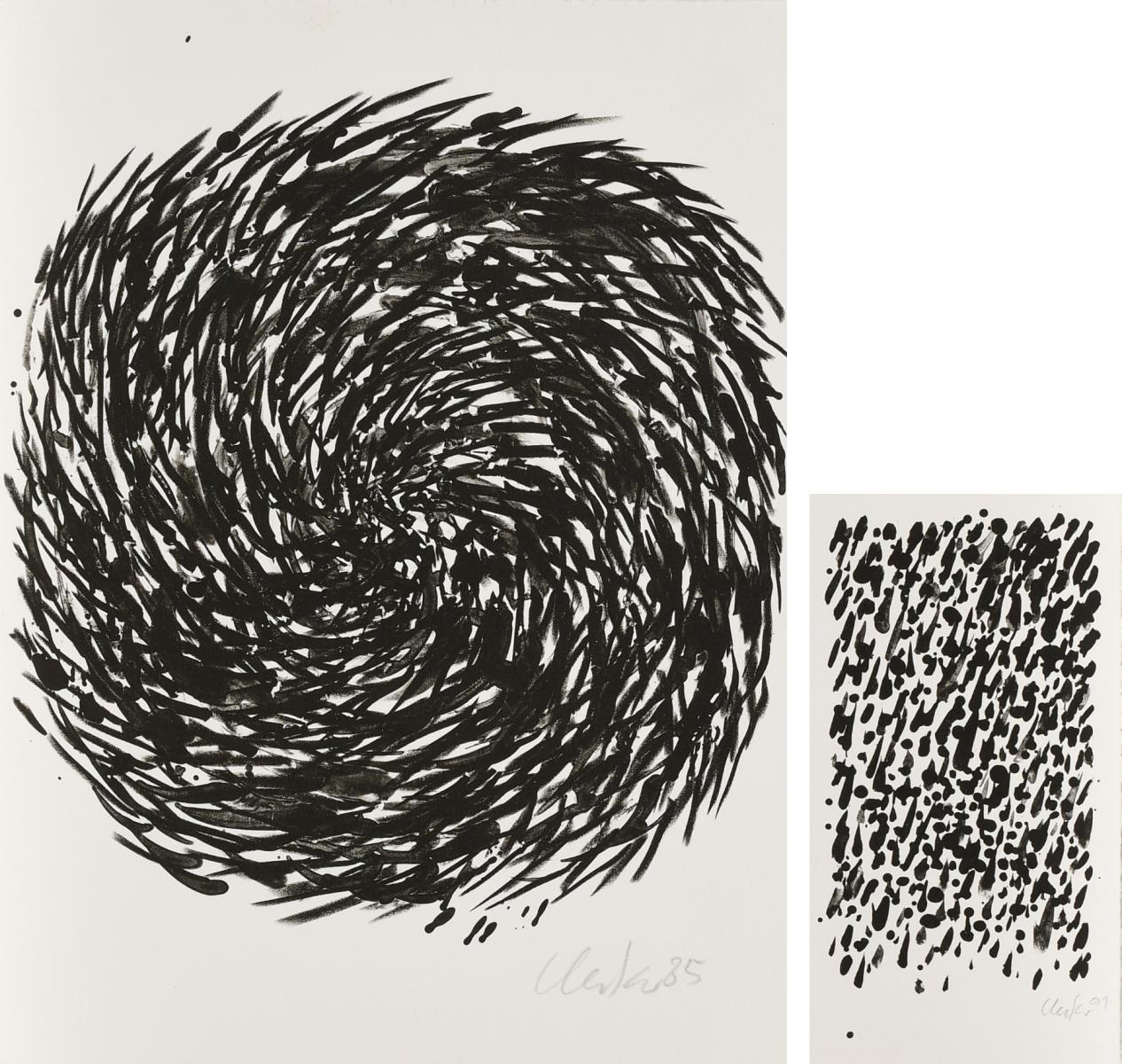 Konvolut von 2 Lithografien. a) Ohne Titel. 1985. Lithografie auf BFK Rives (Wasserzeichen). 30,5 x 27,5cm (38 x