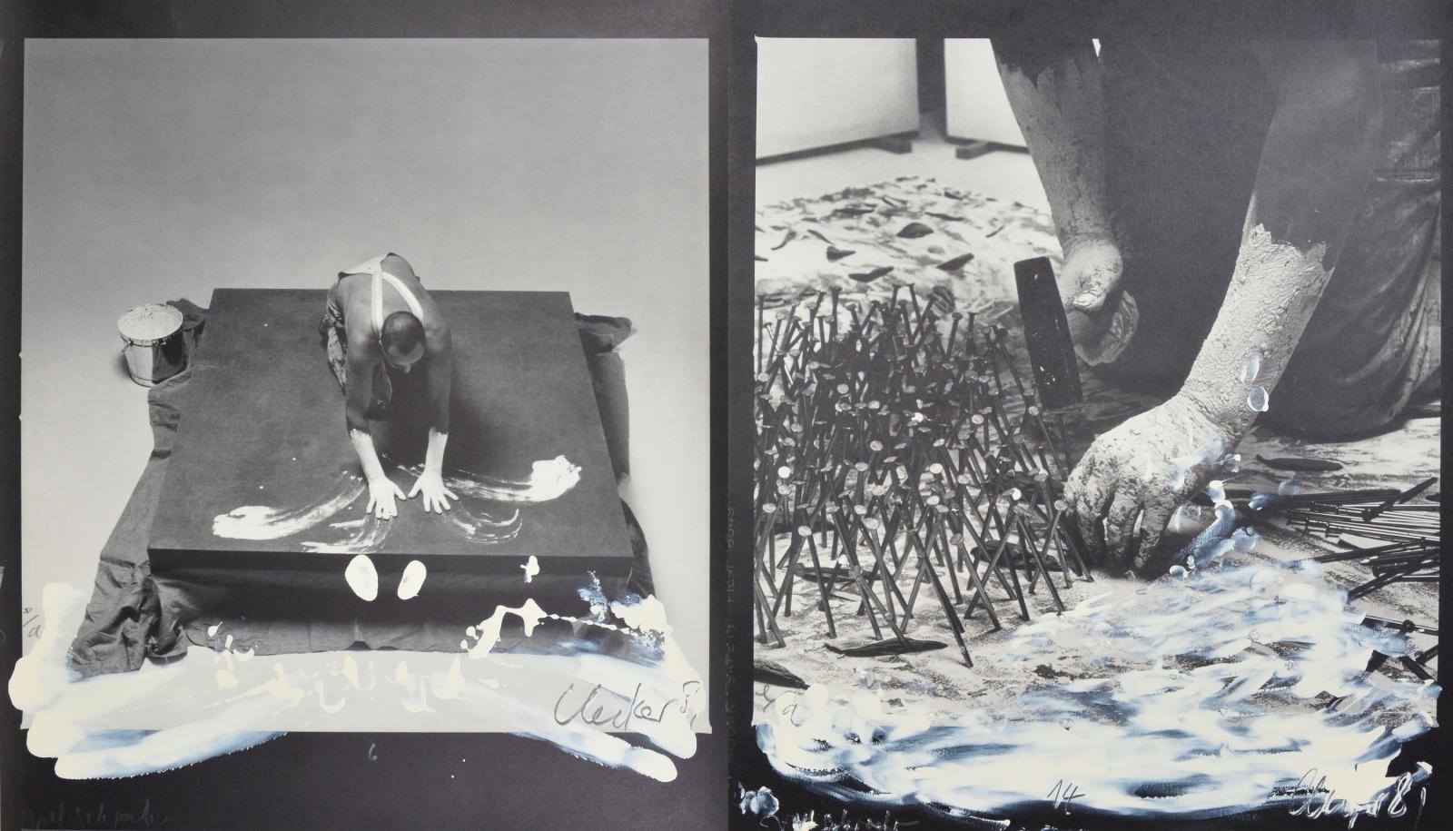 der Lithographien mit Prägung. Beide Lithographien von Uecker übermalt. Jeweils 61 x