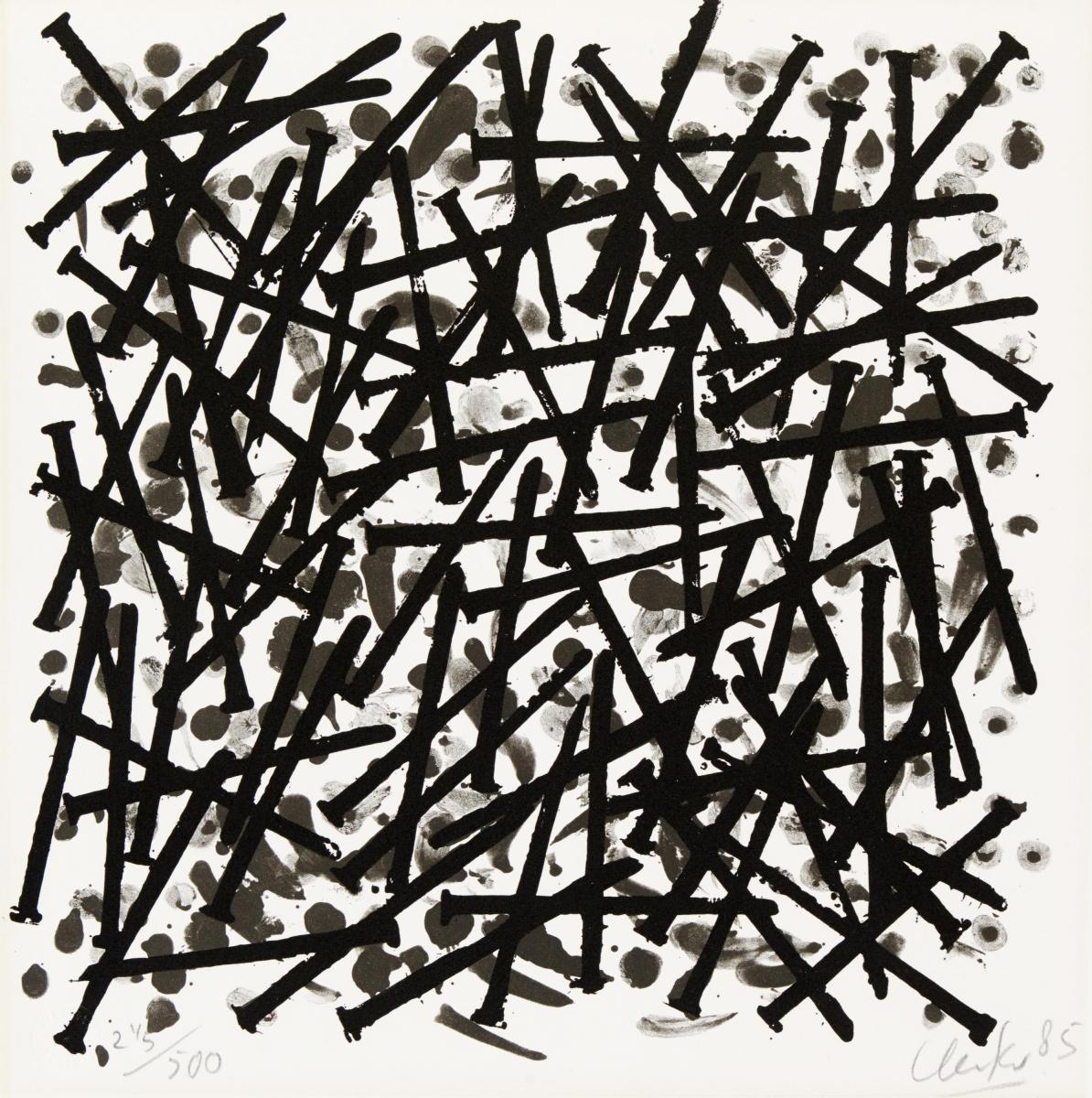 Ohne Titel. 1985. Lithografie auf leichtem Karton. 30,5 x 30cm (32 x 32cm). Signiert, datiert und nummeriert. Ex. 245/500. Rahmen. - Leichter Lichtrand. Verso Reste alter Montierung an der oberen Kante.