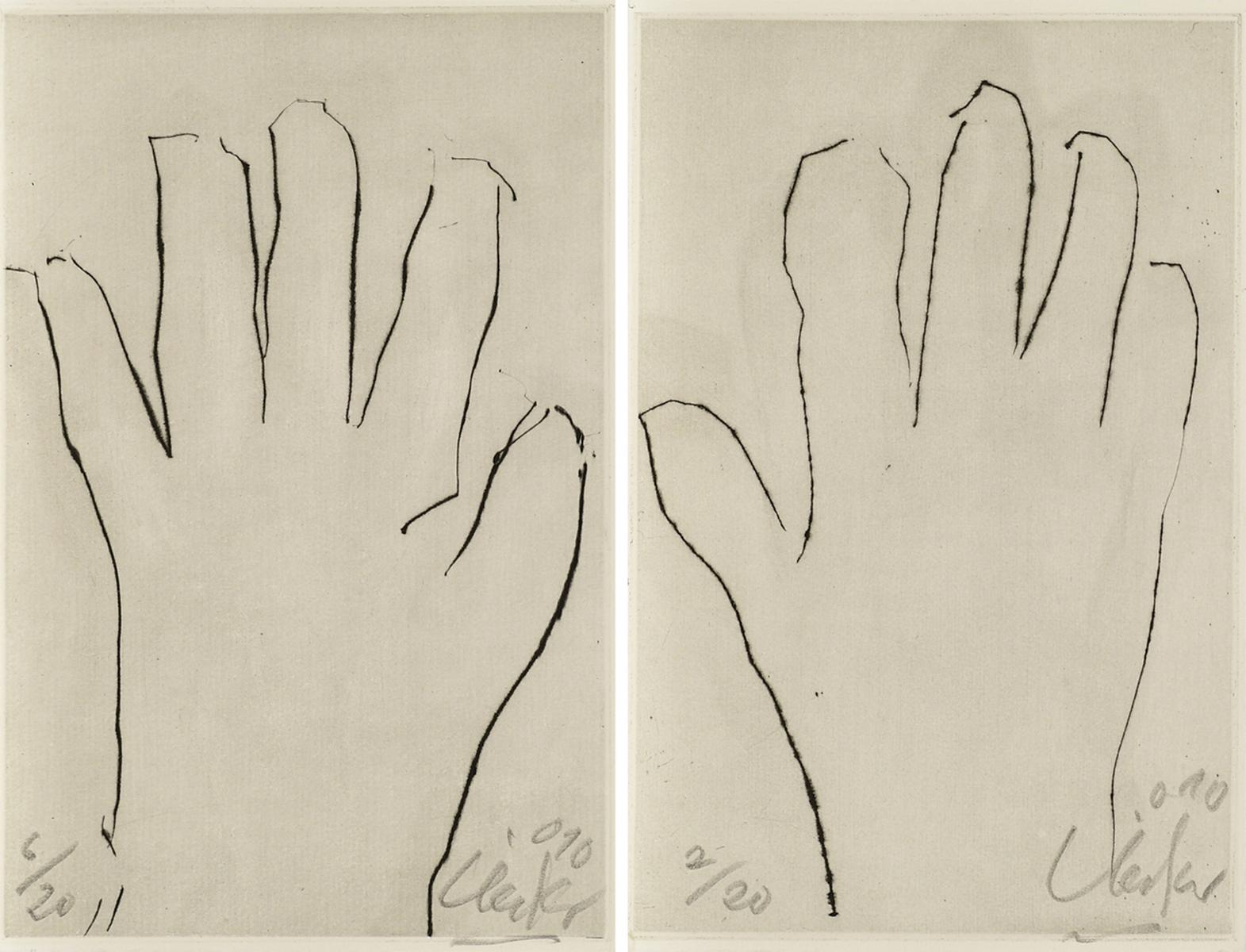 Radierung von Uecker. Jeweils: Auf leichtem Kupferdruckkarton. 24 x 16cm (25 x 16cm).