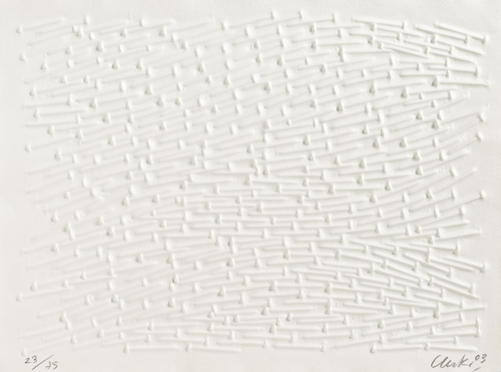 Strömung I. 2003. Prägedruck auf handgeschöpftem Bütten. 34 x 46,5cm (37,5 x 50cm). Signiert und datiert. Erker Presse, St. Gallen (Hrsg.). Ex. 23/75.
