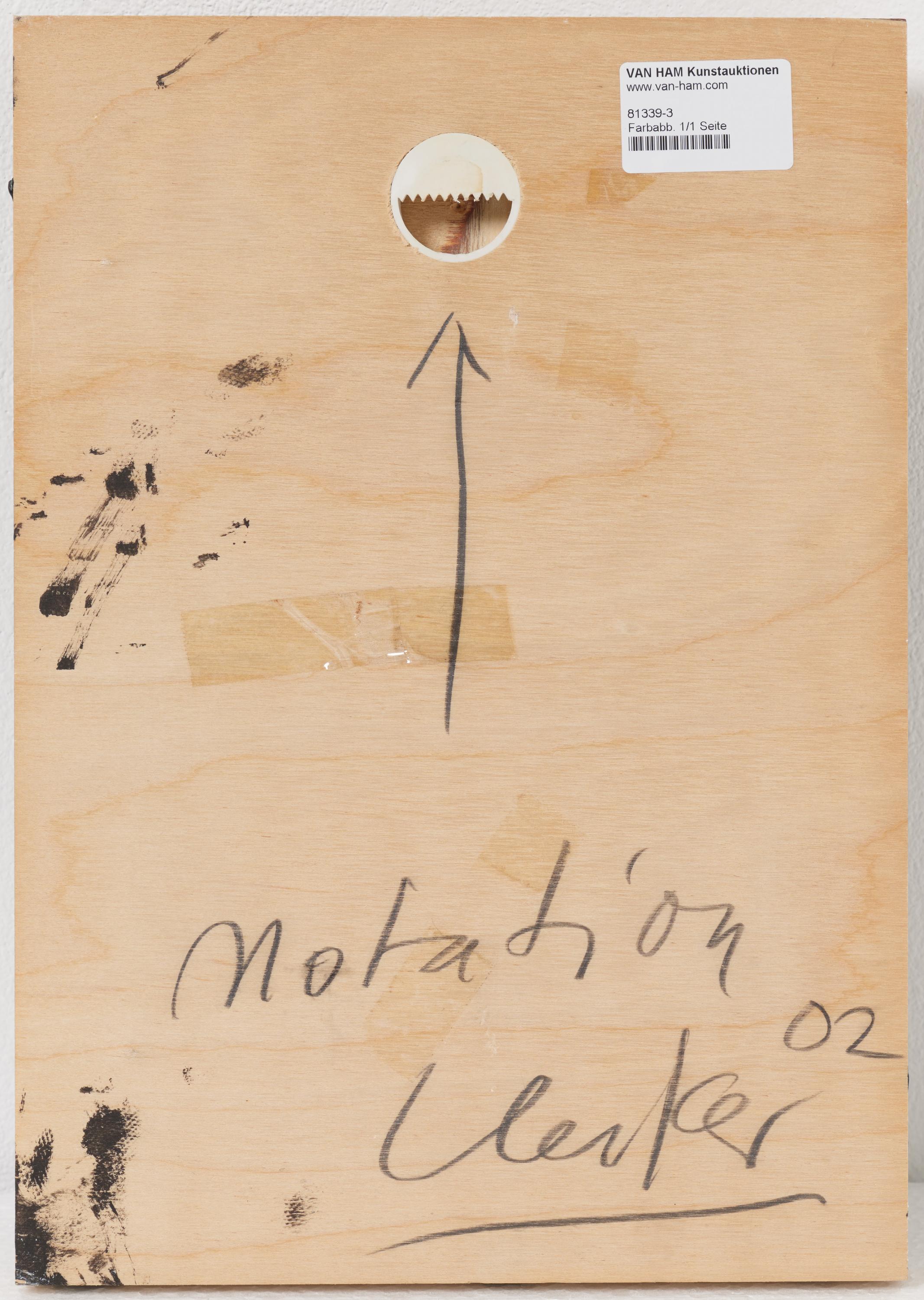 Bezeichnung: Betitelt, datiert und signiert verso: Notation 02 Uecker. Sowie mit Richtungspfeil versehen.