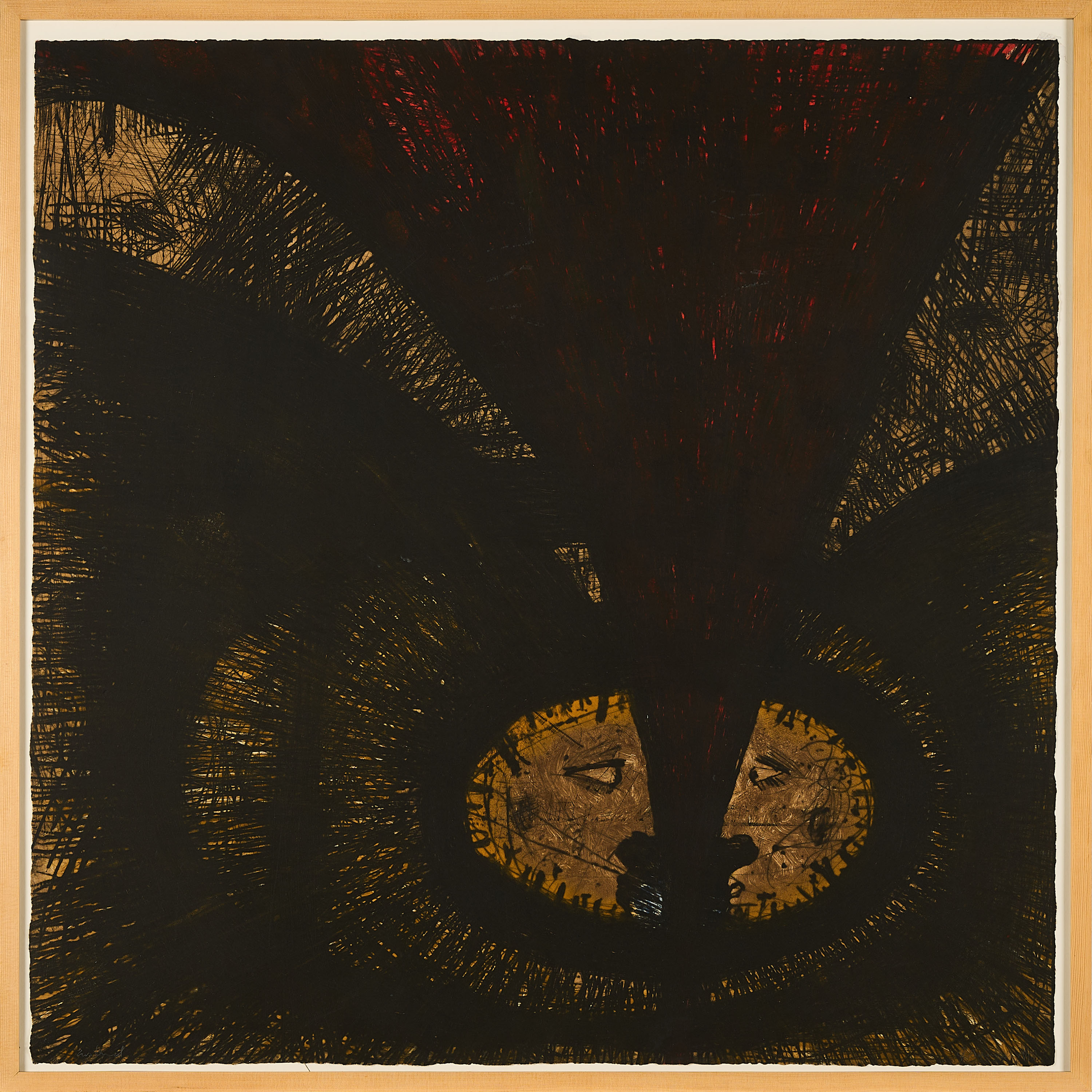 Minimale Bereibung an der rechten Kante mittig. Verso montiert. Montierung hat sich an der Oberkante leicht gelöst. Ansonsten sehr guter Zustand. Das Werk wurde für die Katalogbeschreibung nicht ausgerahmt.