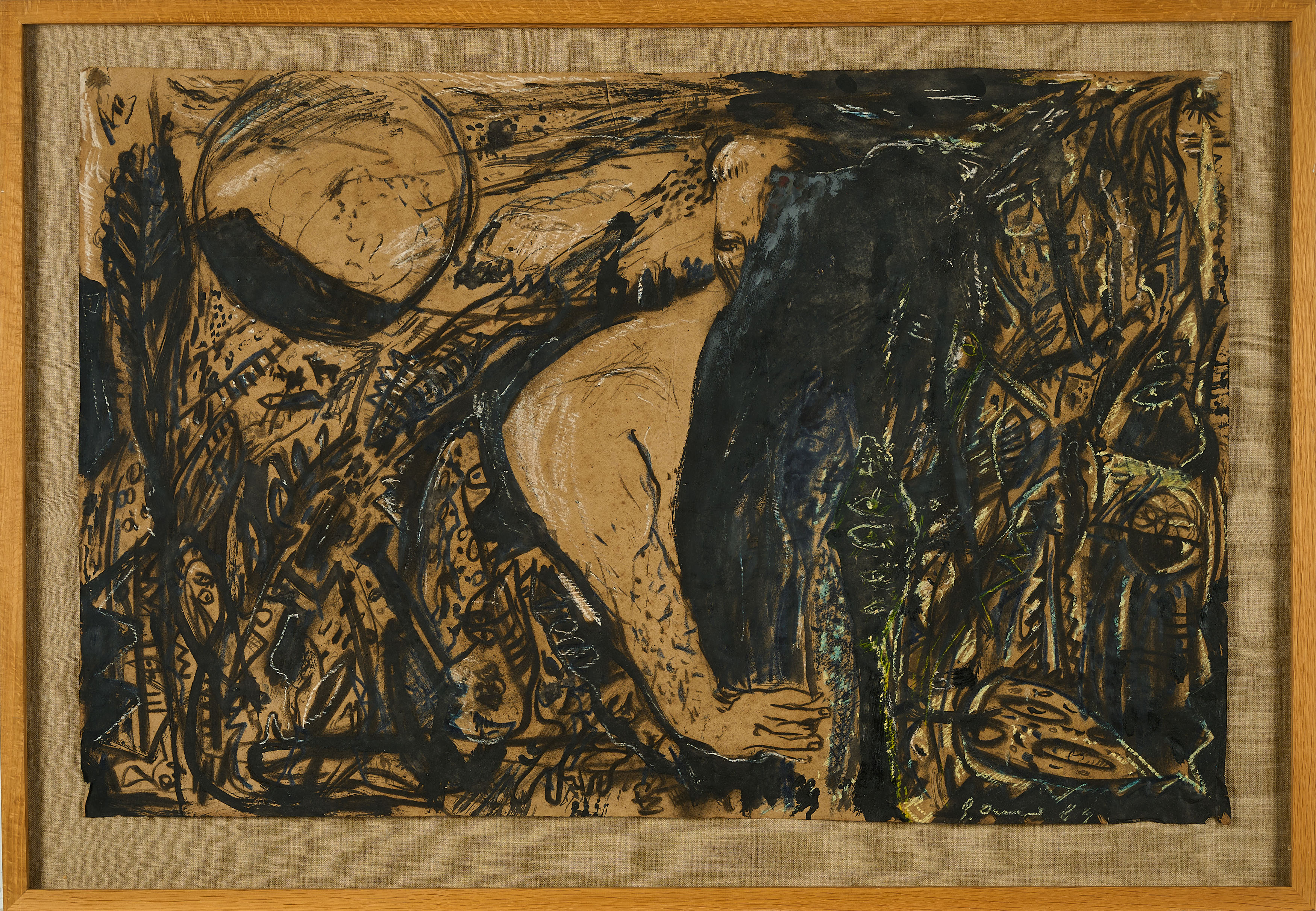 Technik: Mischtechnik auf braunem Velin.