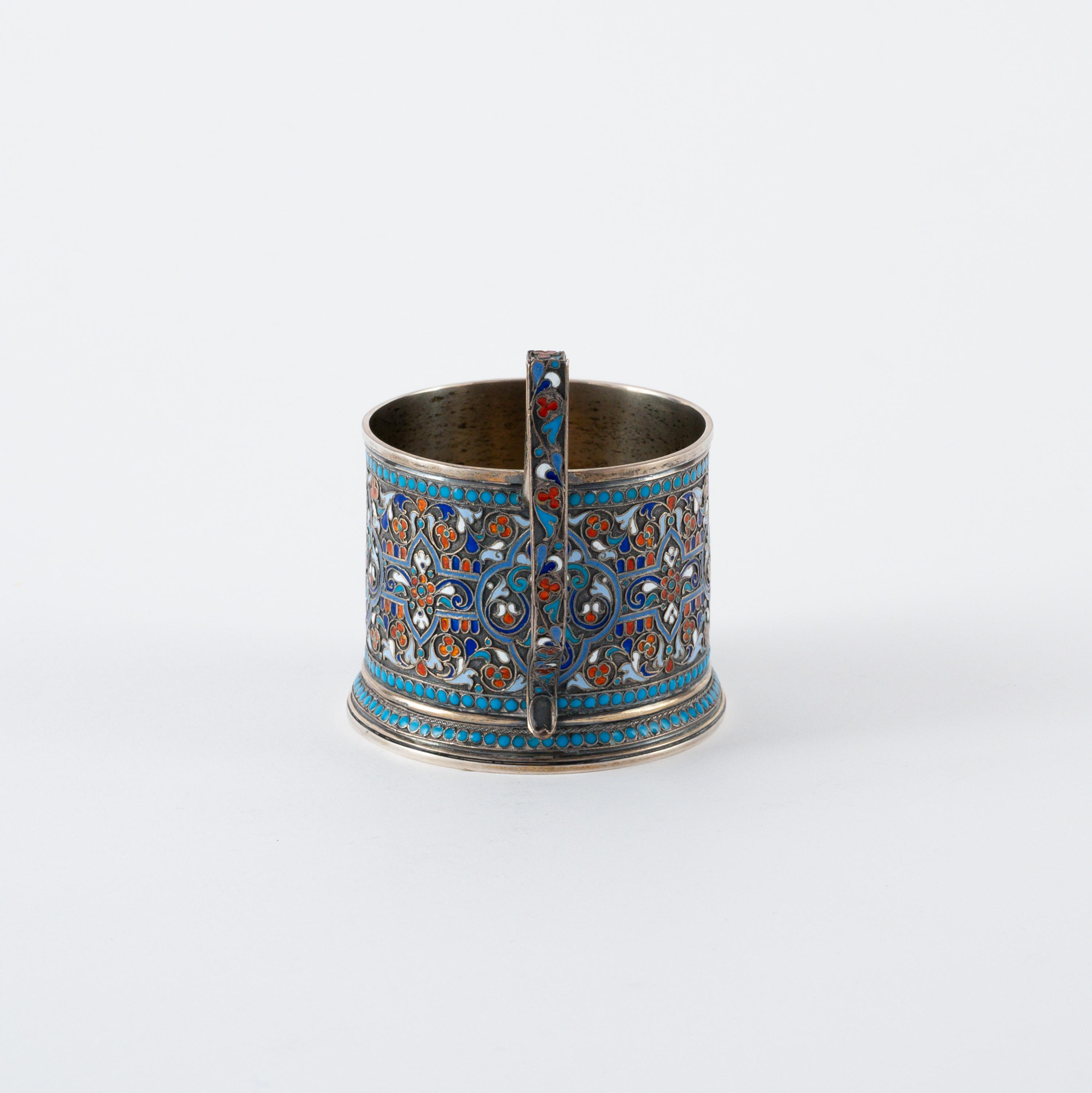 TEEGLASHALTER UND LÖFFEL MIT CLOISONNÉ-DEKOR.