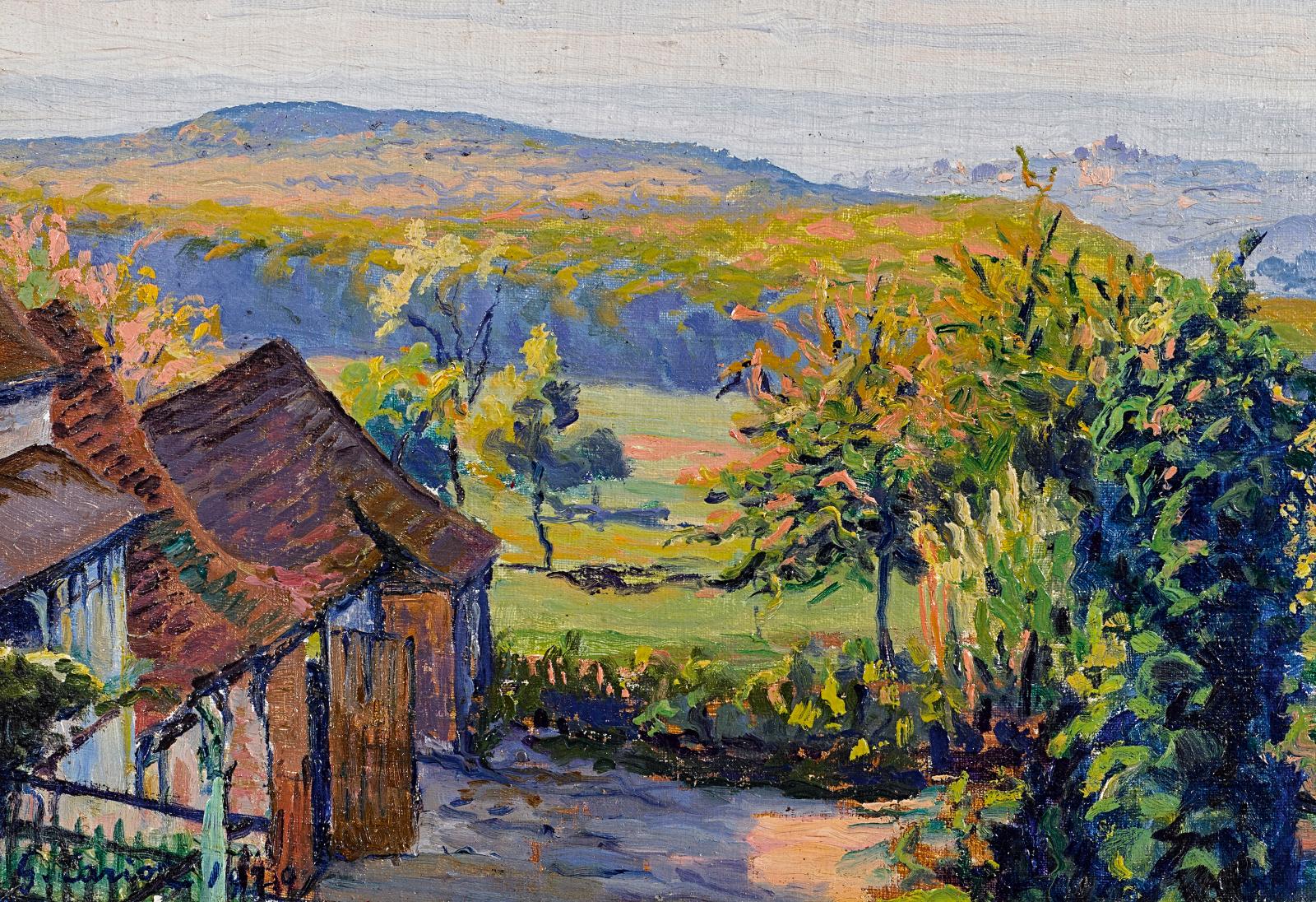 Auf dem Malkarton alte handschriftliche Angaben in Bleistift: "G. Cariot 1920 Georgenborn / Serre de la maison de Philippe (...) / matin d'eté".