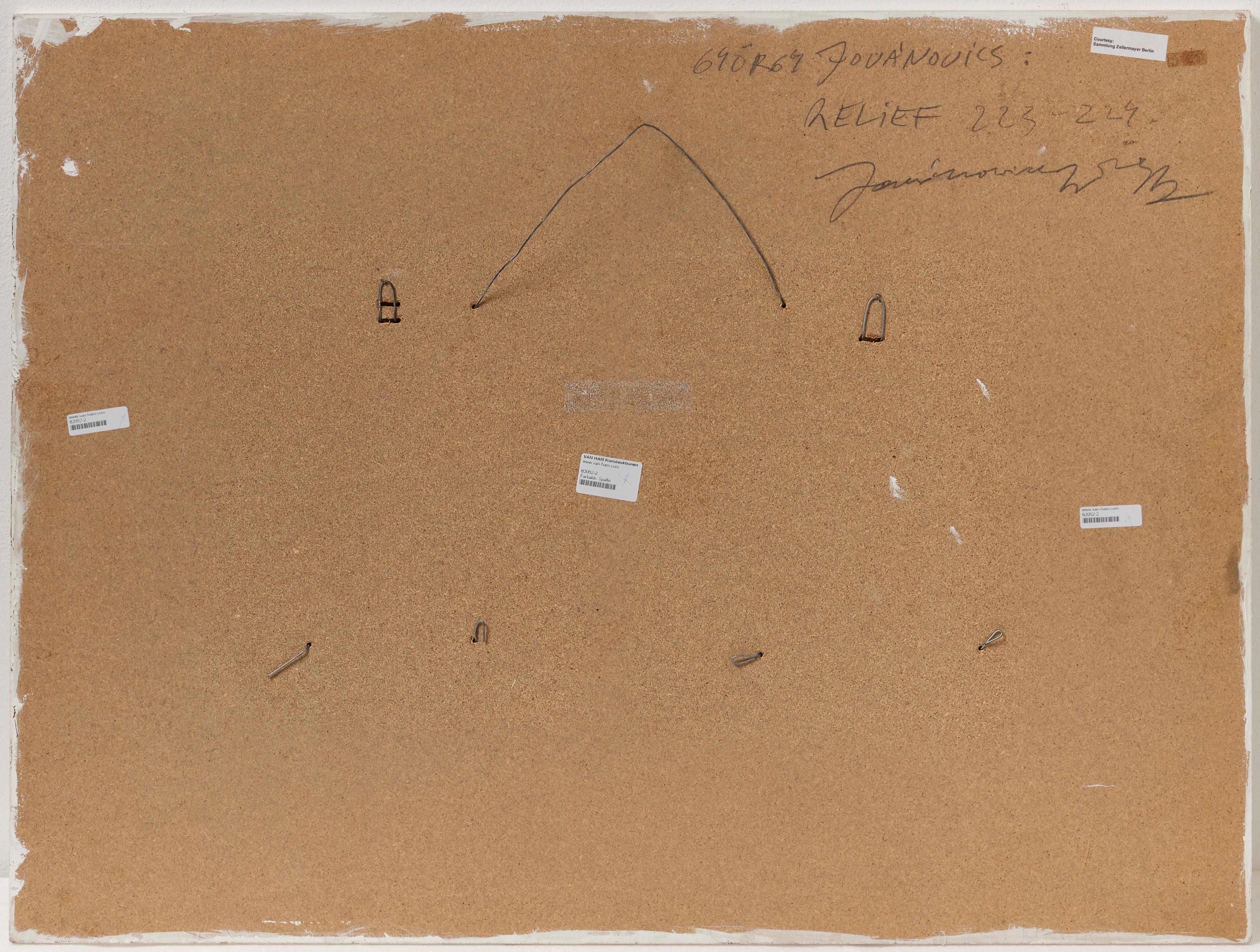 Bezeichnung: Bezeichnet, betitelt und zweifach signiert verso oben rechts: GYÖRGY JOVÁNOVICS: RELIEF 223-224 Jovánovicsgyörgy.