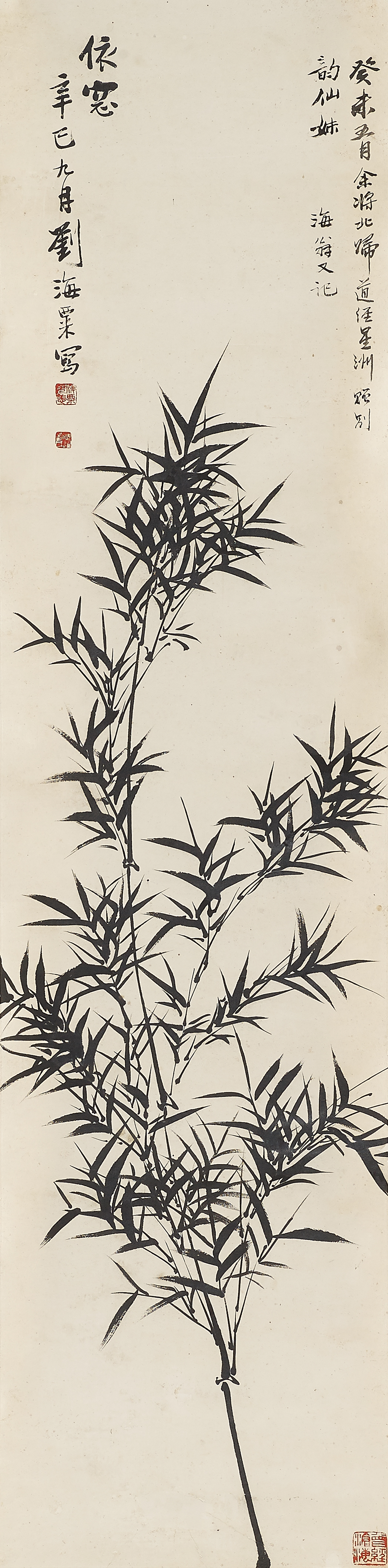 Zustand A/B. Beilage: Hängerolle mit Bambus im Mondschein. Zyklisch datiert 1940. Tusche auf Papier. 117x32,5cm. Aufschrift, Signatur und Siegel.