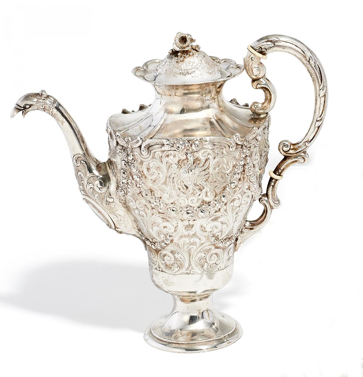 GEFUßTE KAFFEEKANNE MIT PHÖNIX UND ROSENFESTONS STIL ROKOKO.