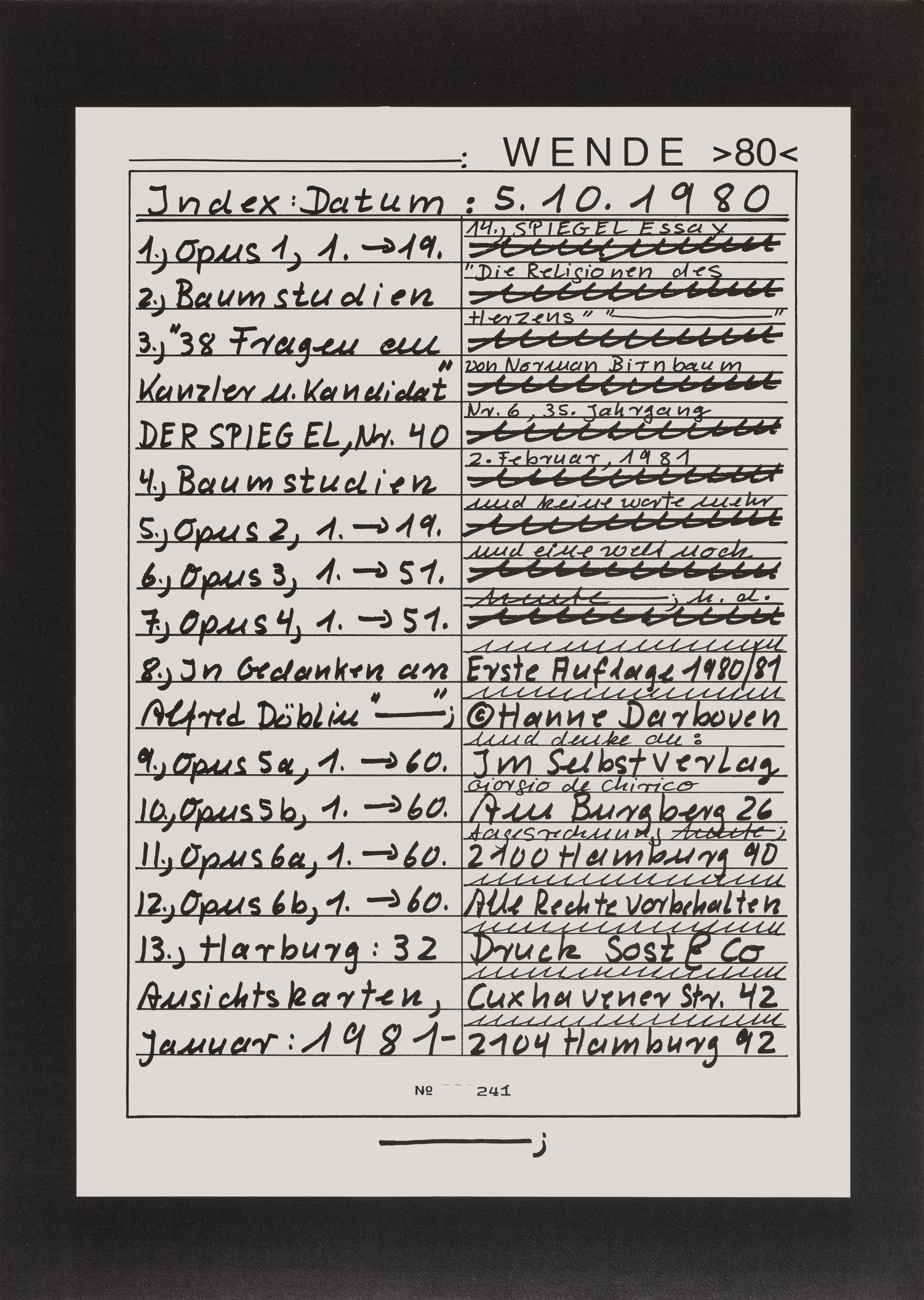 datiert sowie mit Werkangaben und dem Copyright der Künstlerin versehen. Hanne Darboven