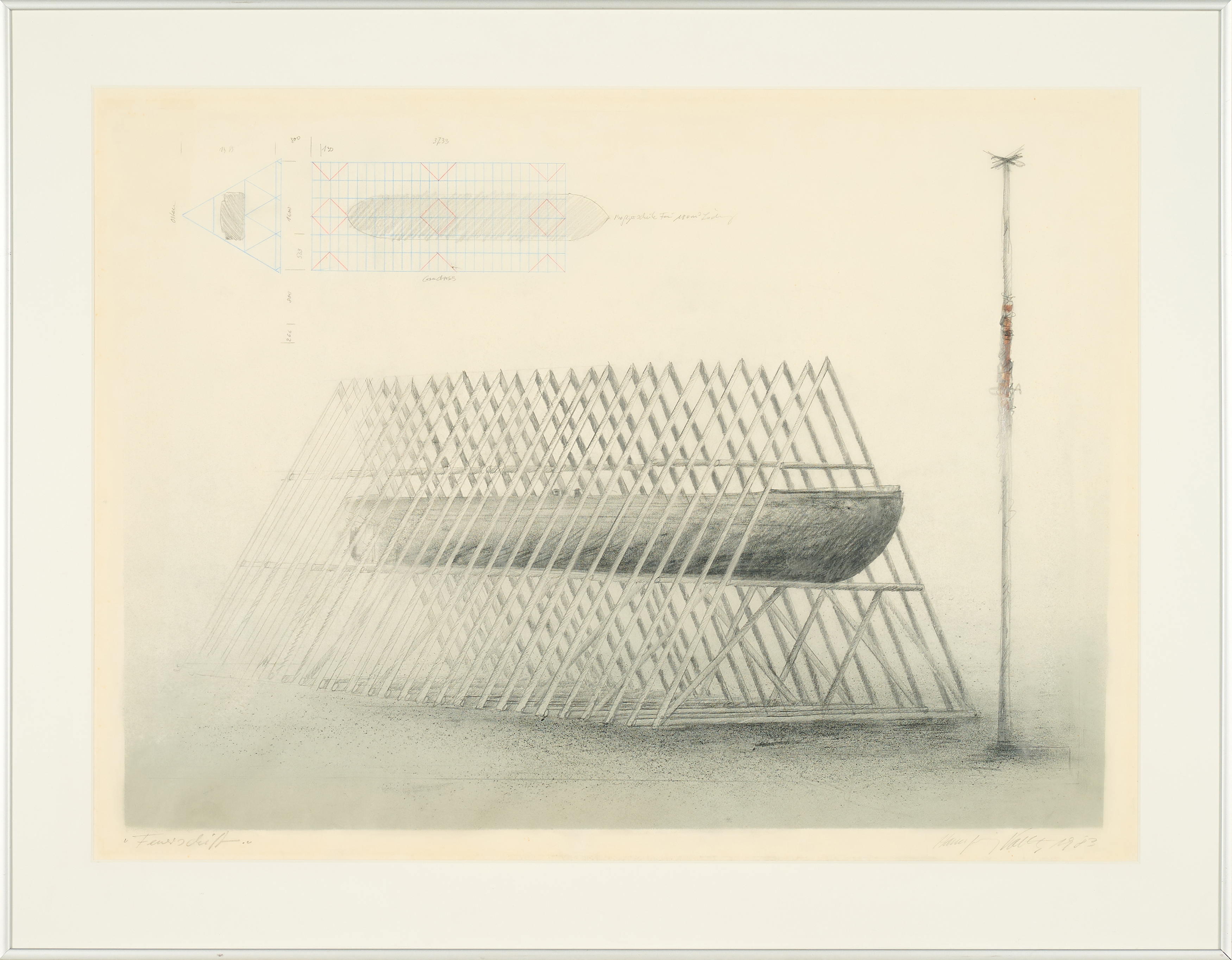 Bezeichnung: Betitelt, signiert und datiert unten links und rechts: "Feuerschiff." Hannsjörg Voth 1983.