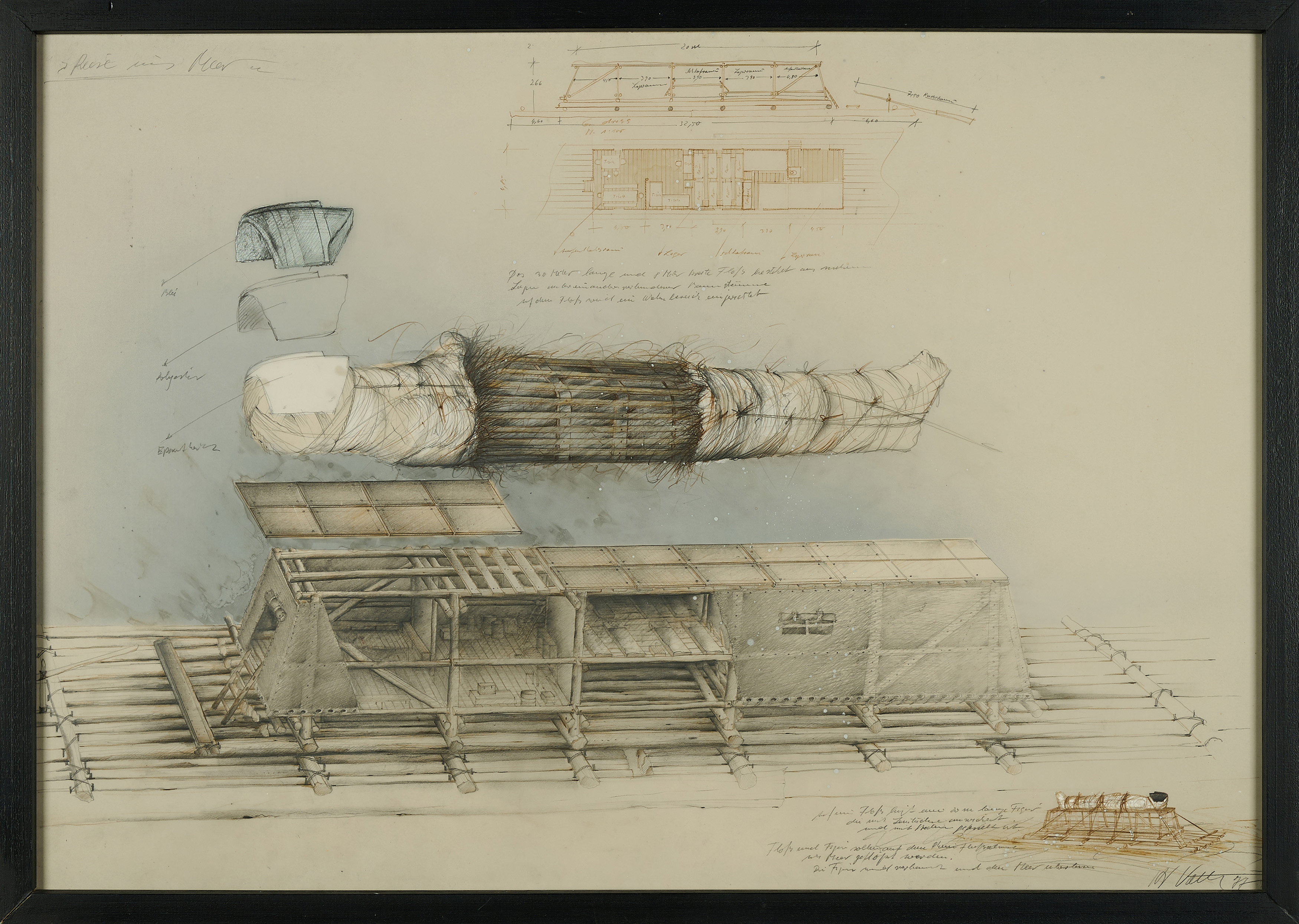 Technik: Bleistift und Farbstift auf Transparentpapier.