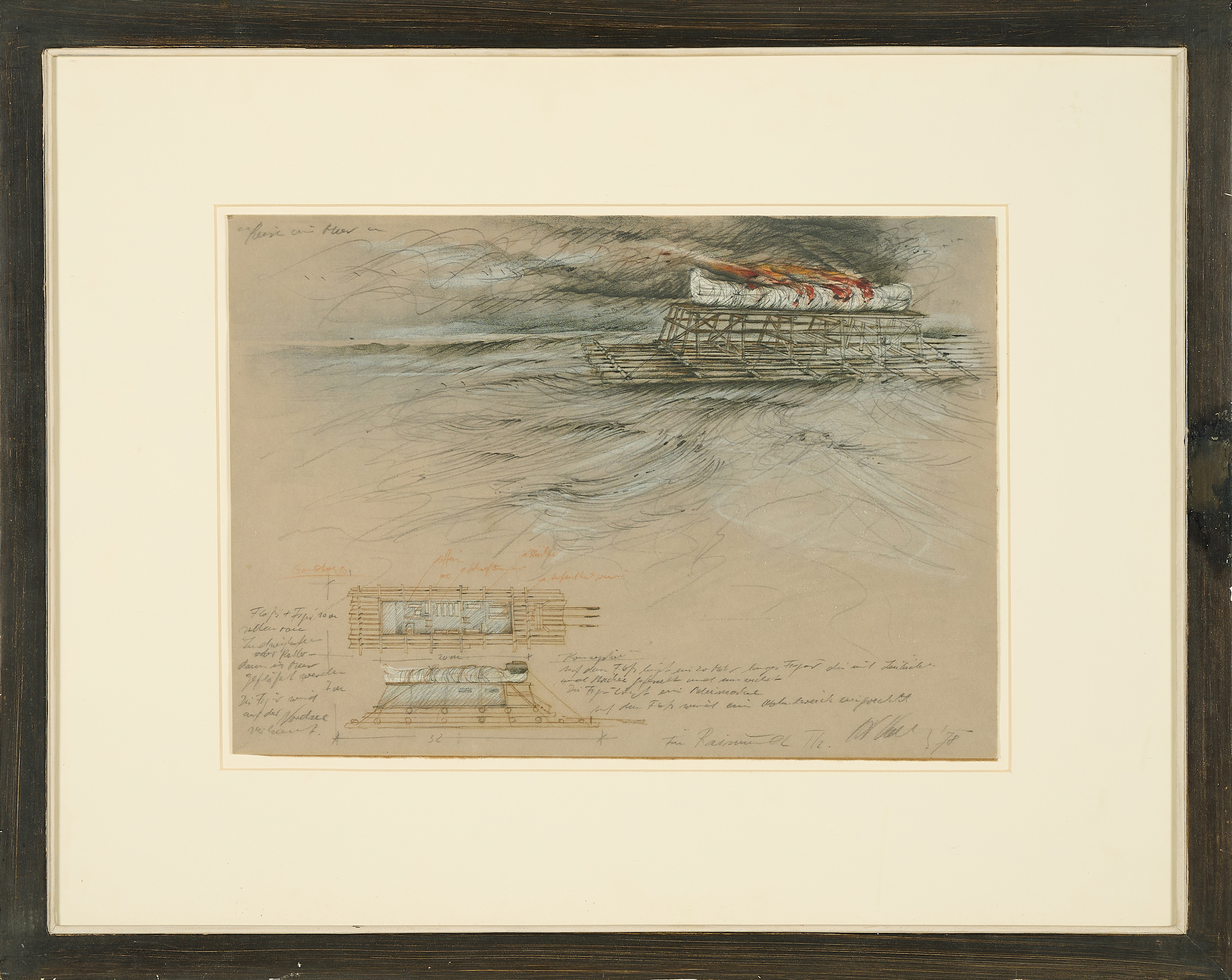 Bezeichnung: Betitelt oben links: "Reise ins Meer". Gewidmet, signiert und datiert unten rechts: Für Raimund Th. H. Voth '78.