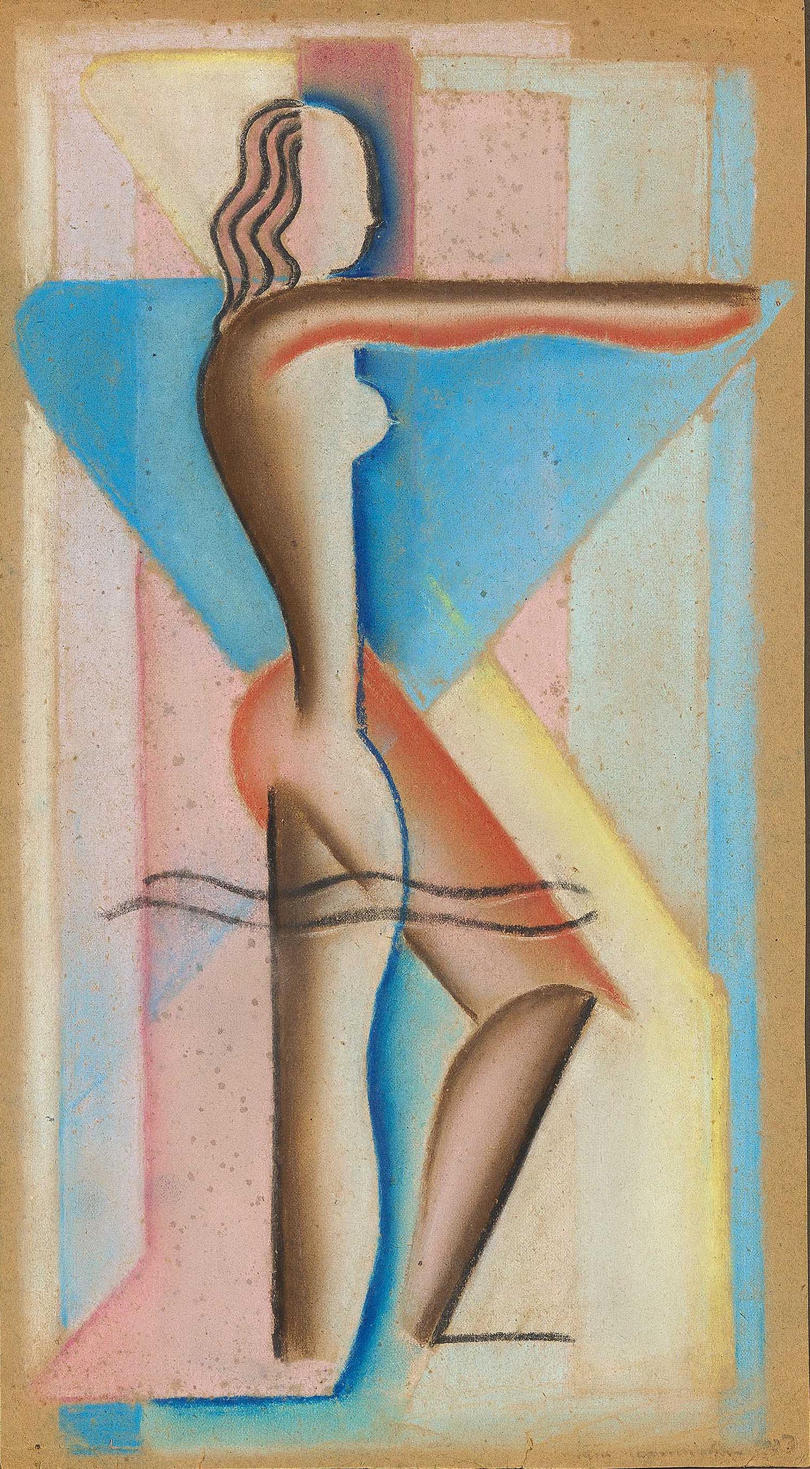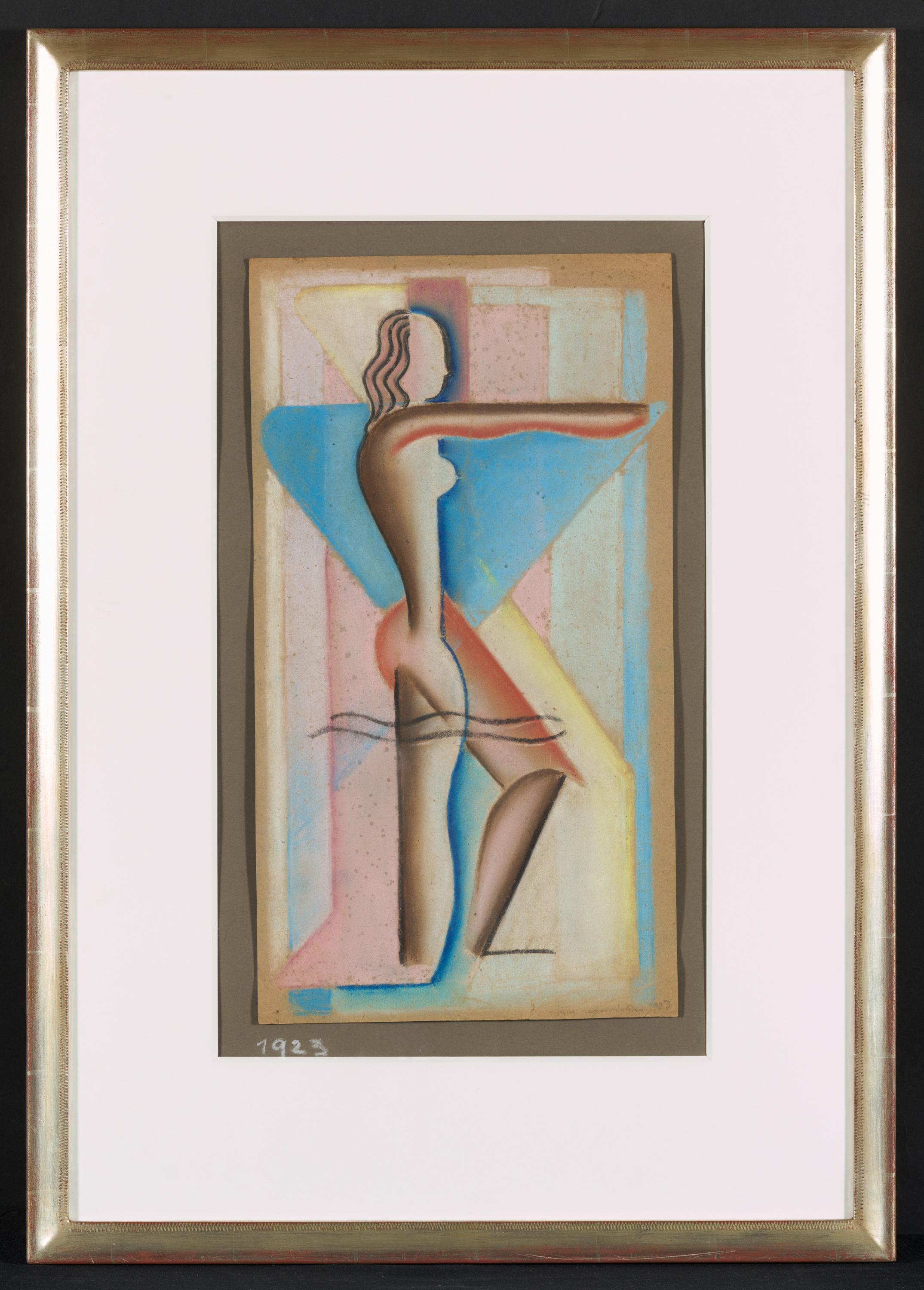Bezeichnung: Signiert und datiert unten rechts: Hans Haffenrichter 1923. Bezeichnet verso: Figürl. Komposition 1923. Hier zudem nummeriert: 25(eingekreist) 23. Dazu Adressstempel des Künstlers. Datiert auf dem Unterlagekarton: 1923.