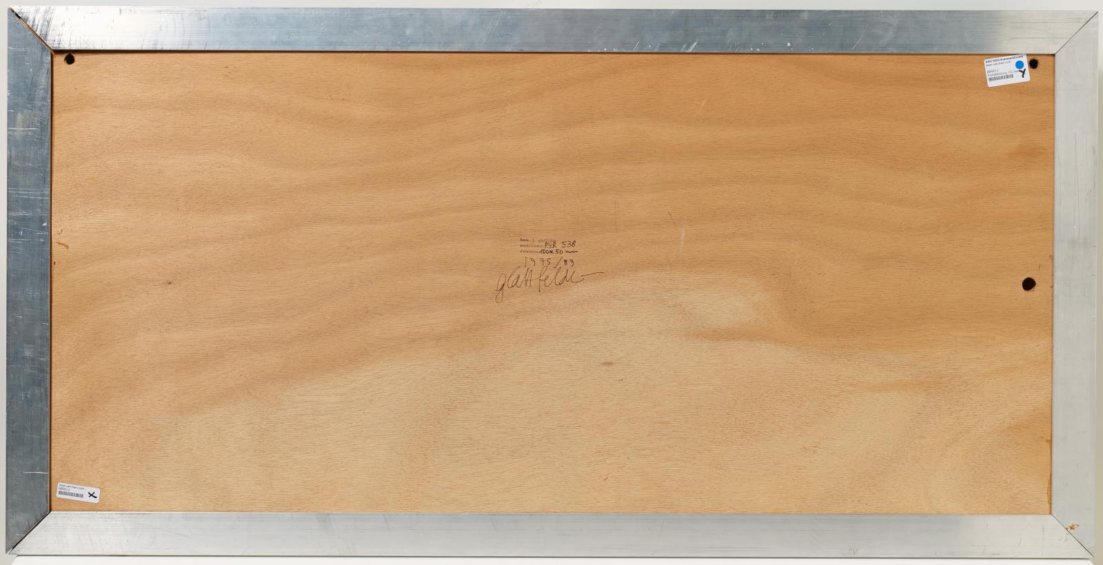 lackiert. Auf Sperrholzplatte in AluminiumrahmenMaße: 51 x 100,5 x 10cm.