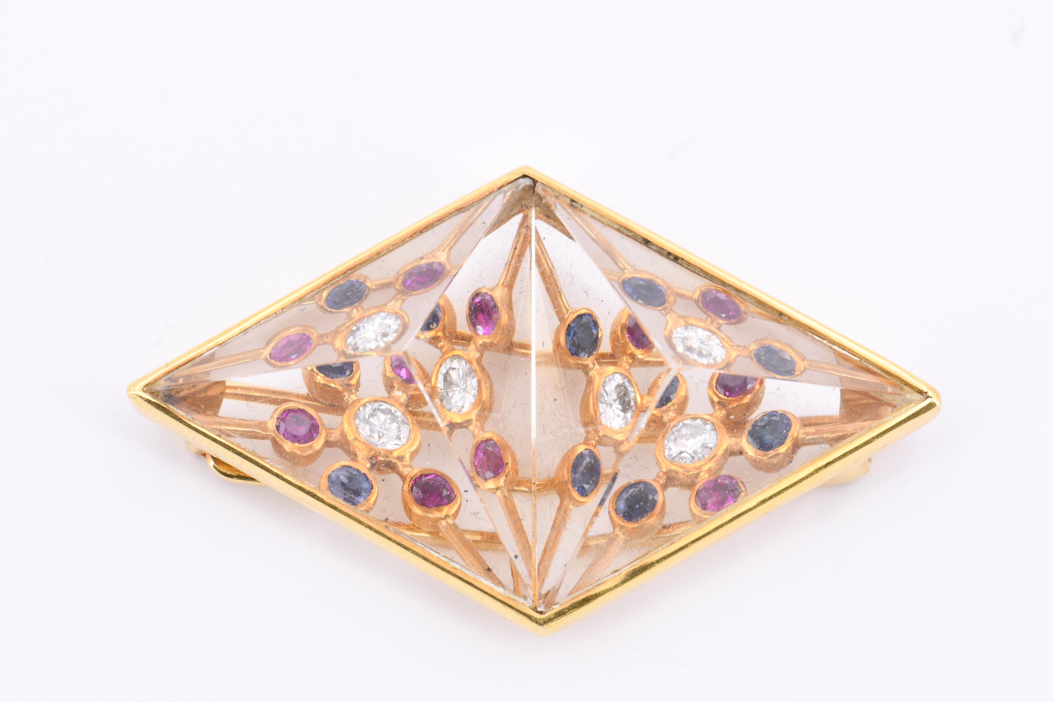 Edelsteine: 10 runde, facettierte Saphire und Rubine, 2 pyramidenförmige Kristalle jeweils 2,1 x 1,0 cm.