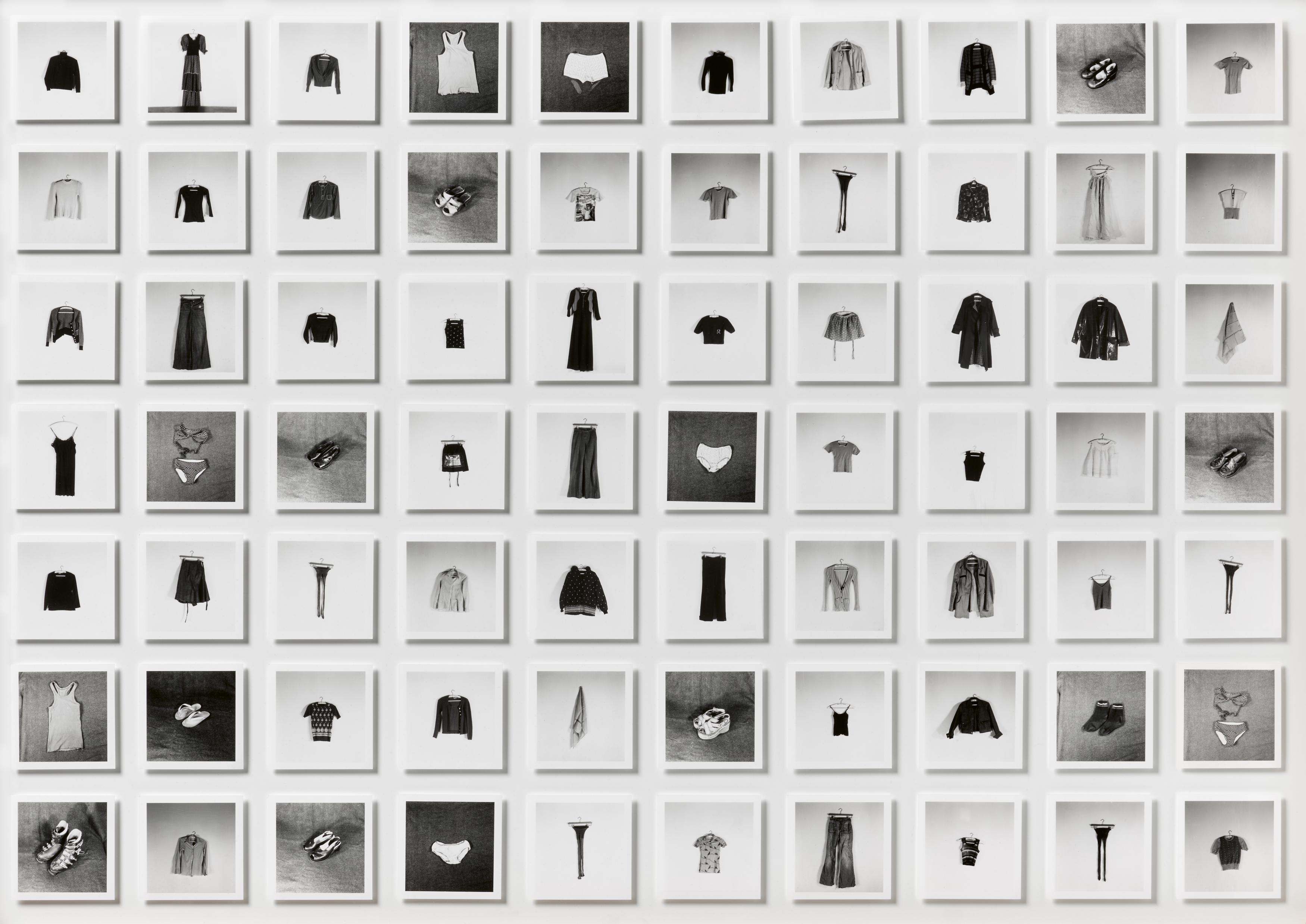 Die Fotografien, vom Künstler in einer Reihenordnung platziert und gerahmt, wirken wie ein inventarischer Katalog, was der Titel der Serie bereits andeutet. Das deutlich Getragene der Kleidungsstücke unterstreicht die Abwesenheit der Person, die sie einst trug, und verleiht den Bildern eine distanzierte, fast klinische Atmosphäre. Der fehlende Kontext lässt Raum für Spekulationen und ruft somit durchaus auch ein beklemmendes Gefühl beim Betrachter hervor. Zwar zeigt die Serie reale Kleidungsstücke, doch ob es sich tatsächlich um "alle Kleider einer Frau" handelt, wie der Titel suggeriert, bleibt unklar und kann allein durch die Bilder nicht nachgewiesen werden. Feldmann zeigt hier meisterhaft seinen subtilen, oft humorvollen Umgang mit der Vergänglichkeit des Alltags und thematisiert gleichzeitig die Abwesenheit des menschlichen Körpers.