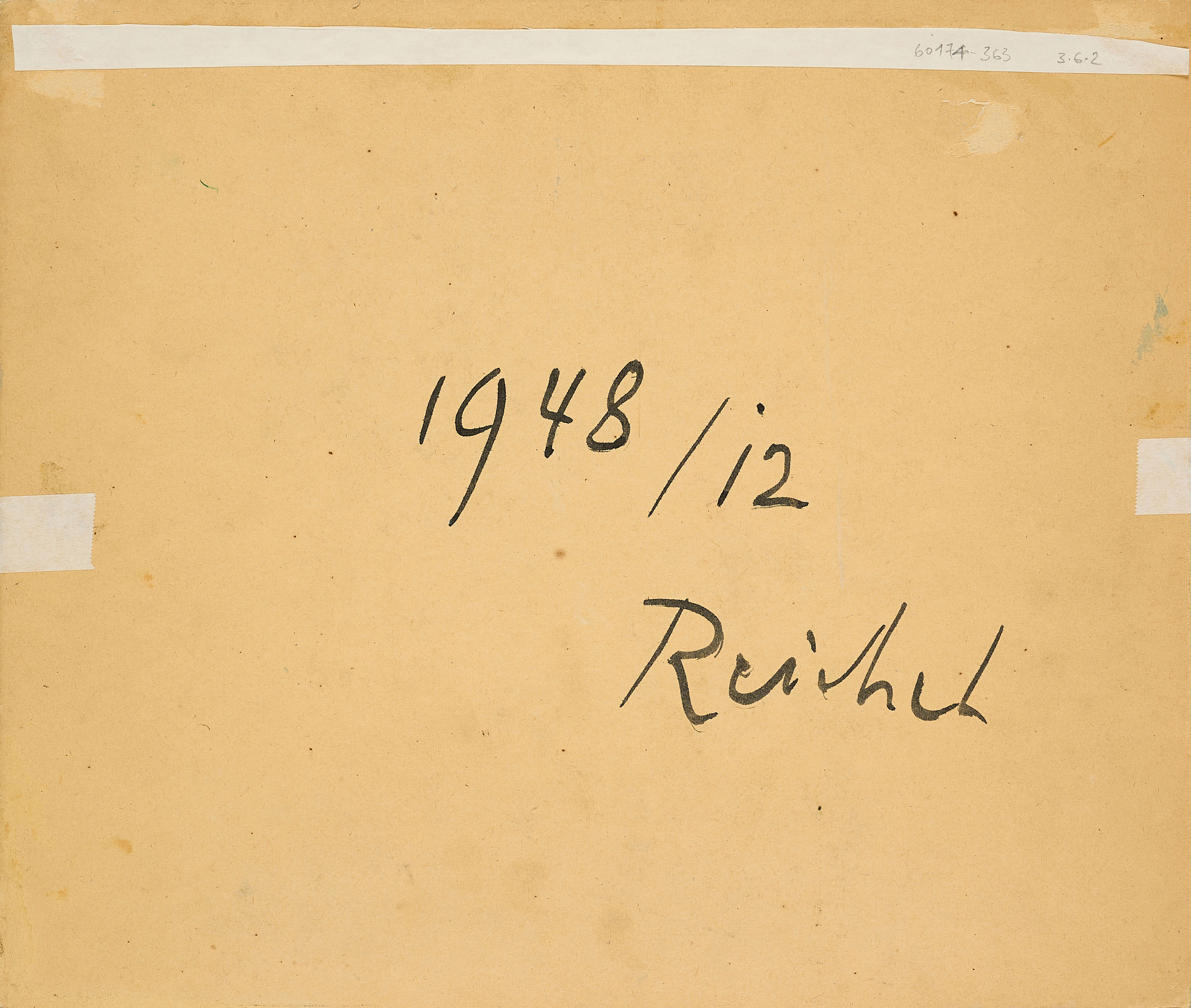 Bezeichnung: Monogrammiert und datiert unten rechts: R 48. Sowie nummeriert auf dem Karton: 12. Verso mit Werk-Nr. bezeichnet und signiert: 1948/12, Reichel.