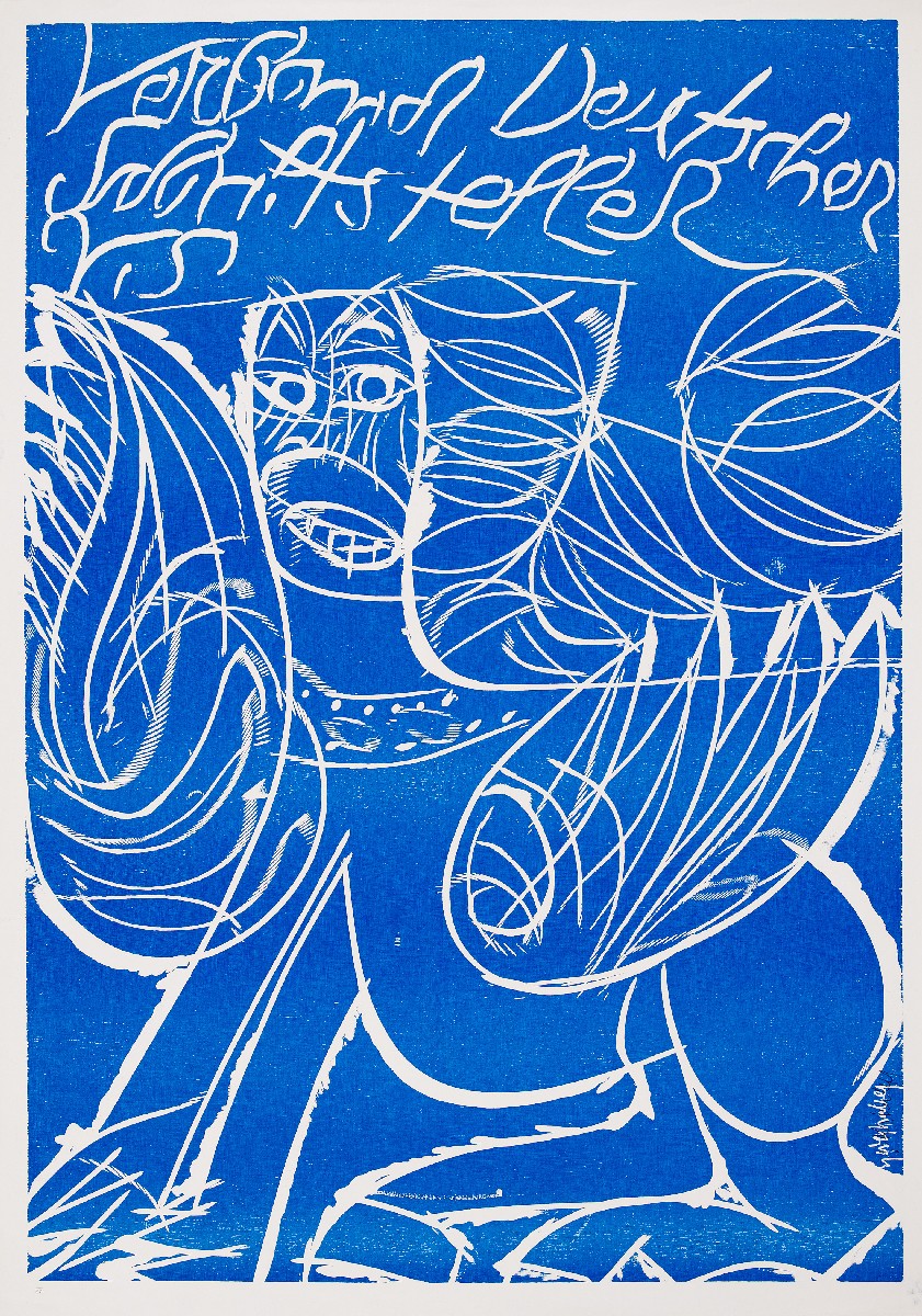 Drucke: Farbholzschnitte auf Werkdruckpapier. Blatt jeweils 100 x 70cm. Ein Blatt ohne