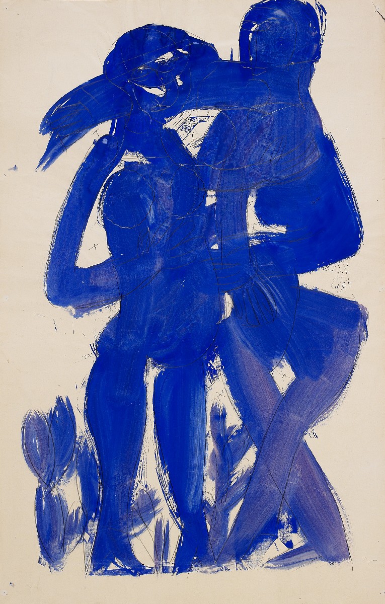 Paare XII (Entwurf). Ca. 1977. Aquarell und Bleistiftzeichnung auf Papier. 114 x 72,5cm.