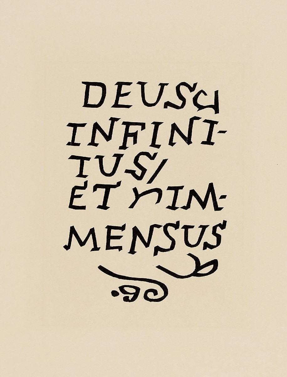 Deus infinitus et immensus (Text). Holzschnitt auf Velin. 24,5 x 18cm (70 x 49,5cm). -