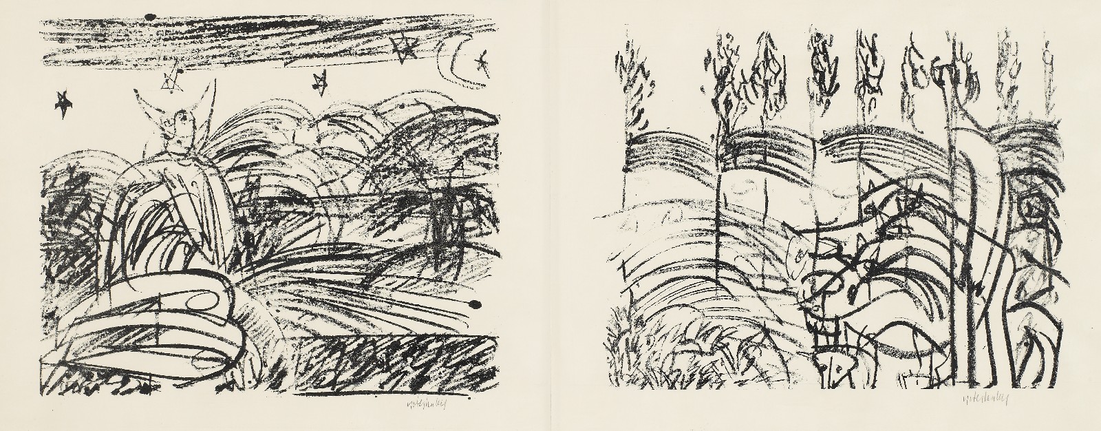 nummerierten Exemplaren. Aus der Mappe "Hap Grieshaber: die raue Alp".. 20 Lithographien auf Velin.