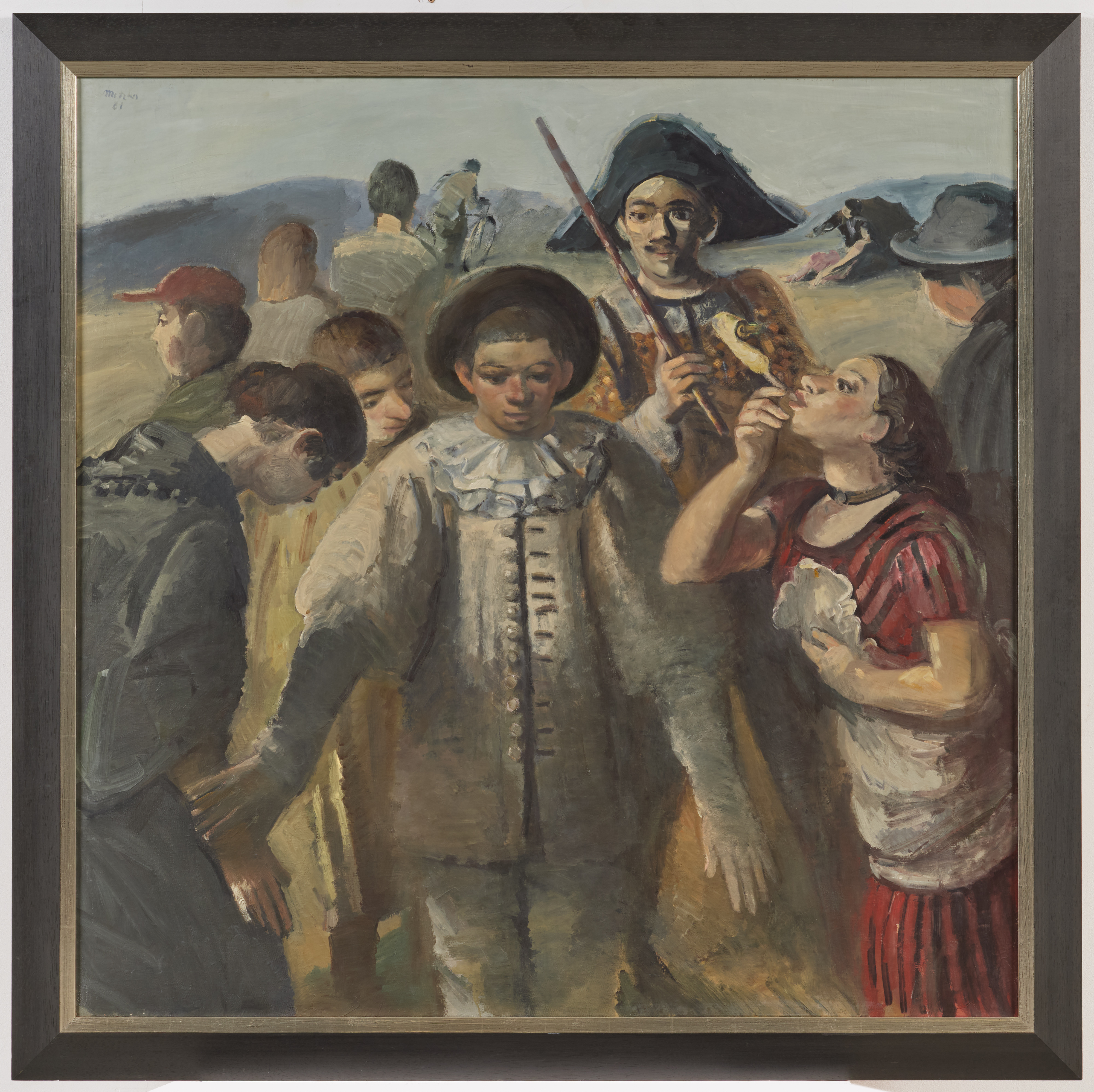 Bezeichnung: Signiert und datiert oben links: Metzkes 81. Sowie bezeichnet (von fremder Hand?) verso auf dem Keilrahmen: Harald Metzkes Pierrot und Harlekin, 1981.