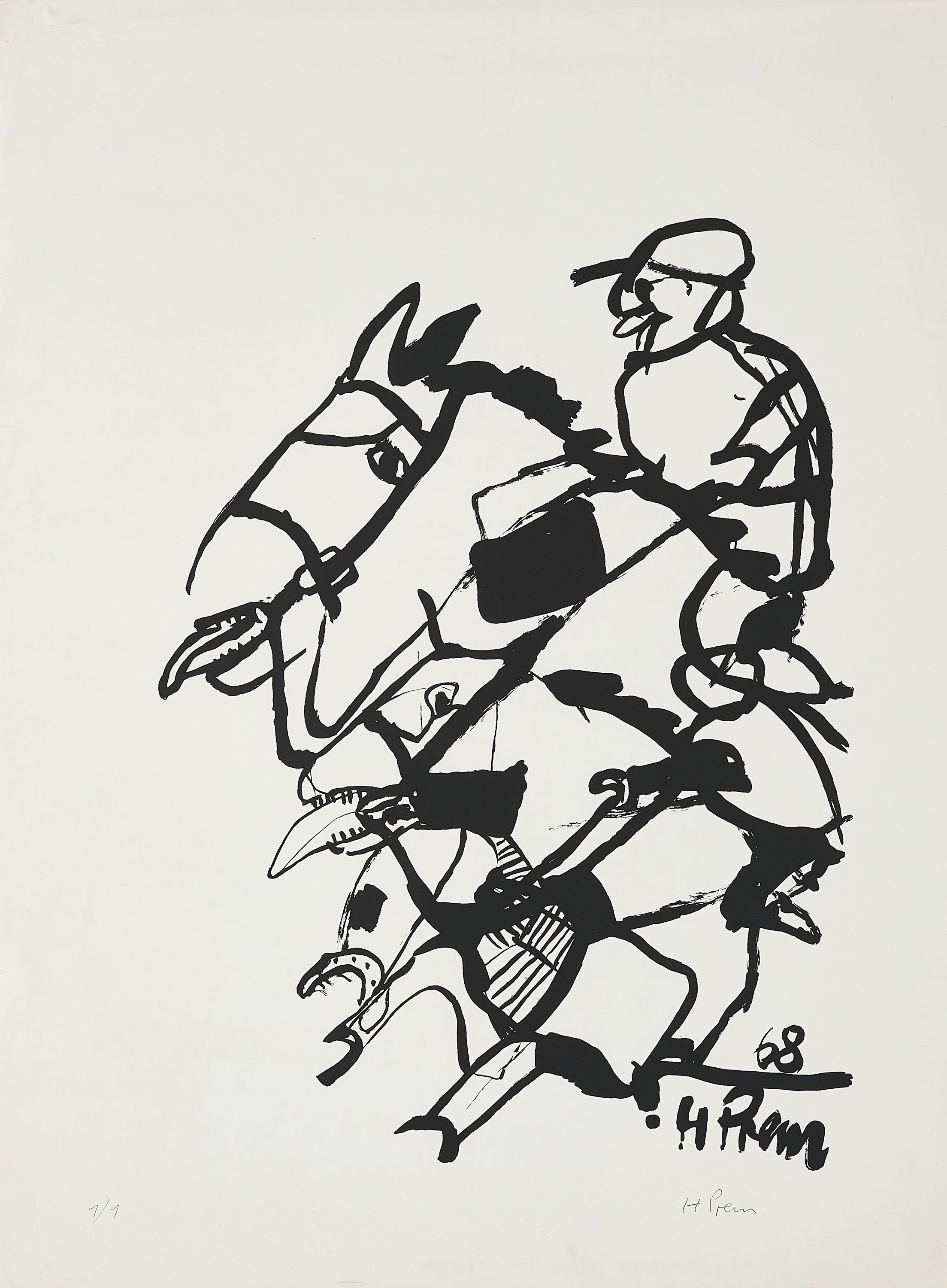 datiert und nummeriert. Ex. 9/60. b) Reiter. 1968. Serigrafie auf Velin. 44 x 32cm (60 x