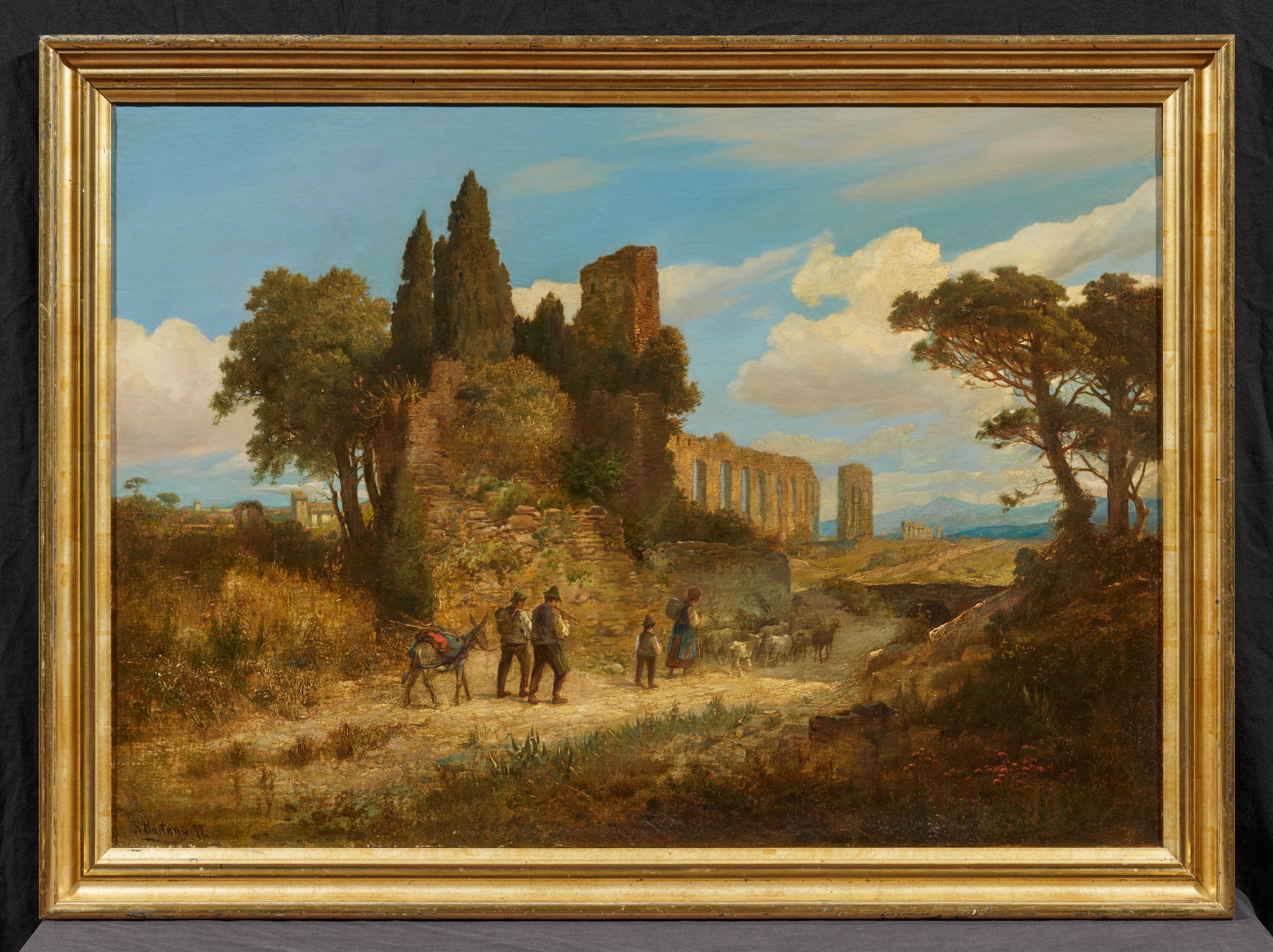 Rückseitig handschriftliches Preis-Etikett: "Bild II. Römische Campagne. Preiß 290 (...)"