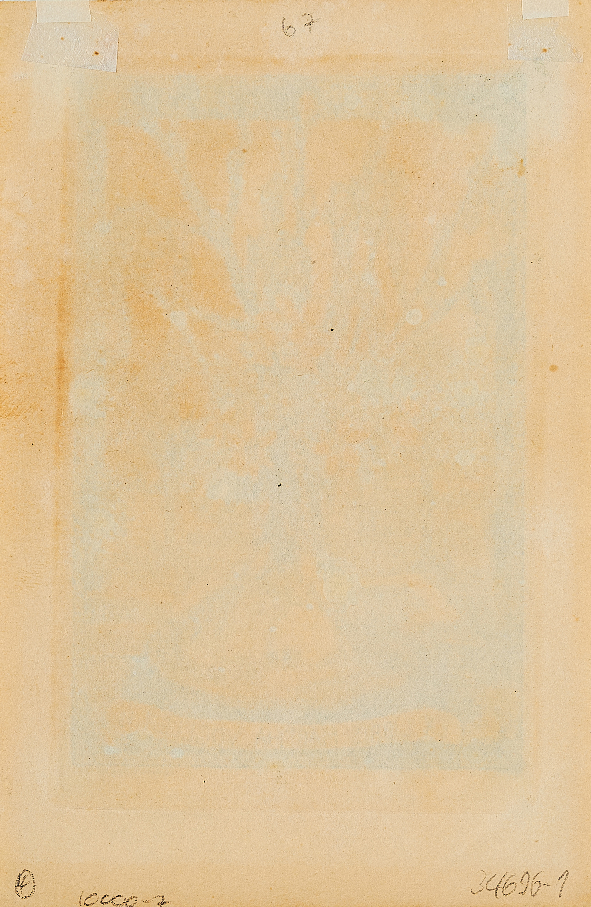 Außerhalb des Passepartoutausschnitts gebräunt. Schwache Knickspur links unten außerhalb der Darstellung (ca. 3cm). Verso Reste alter Montierung in den oberen beiden Ecken.