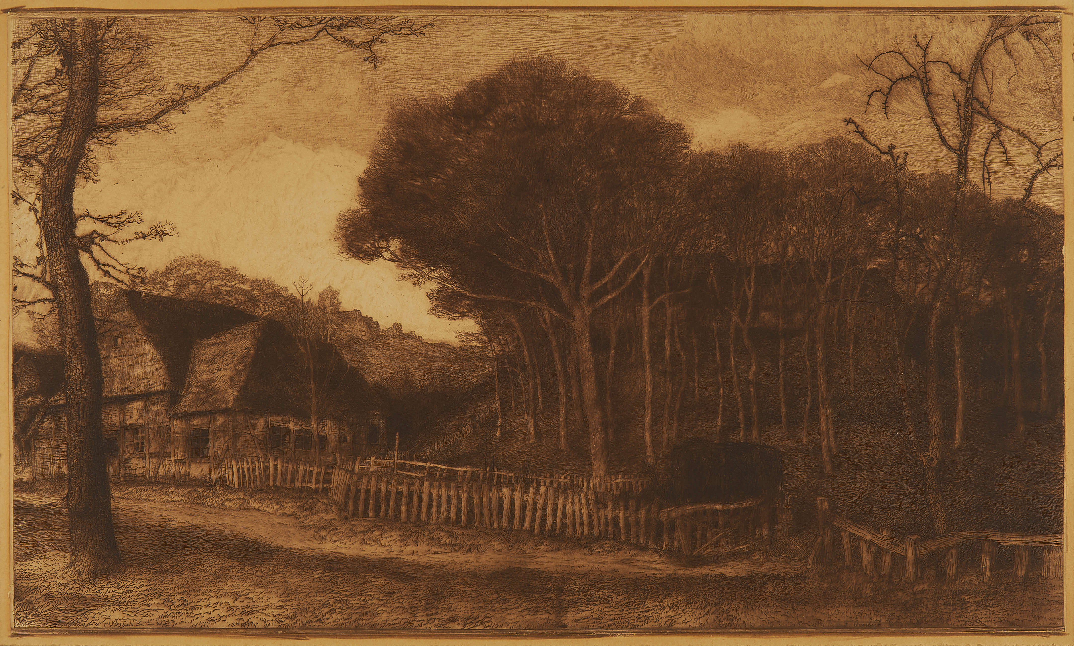 - Fritz Overbeck. Haus in Worpswede. Radierung auf Velin. Auf Karton aufgezogen. 36 x 60,5cm.