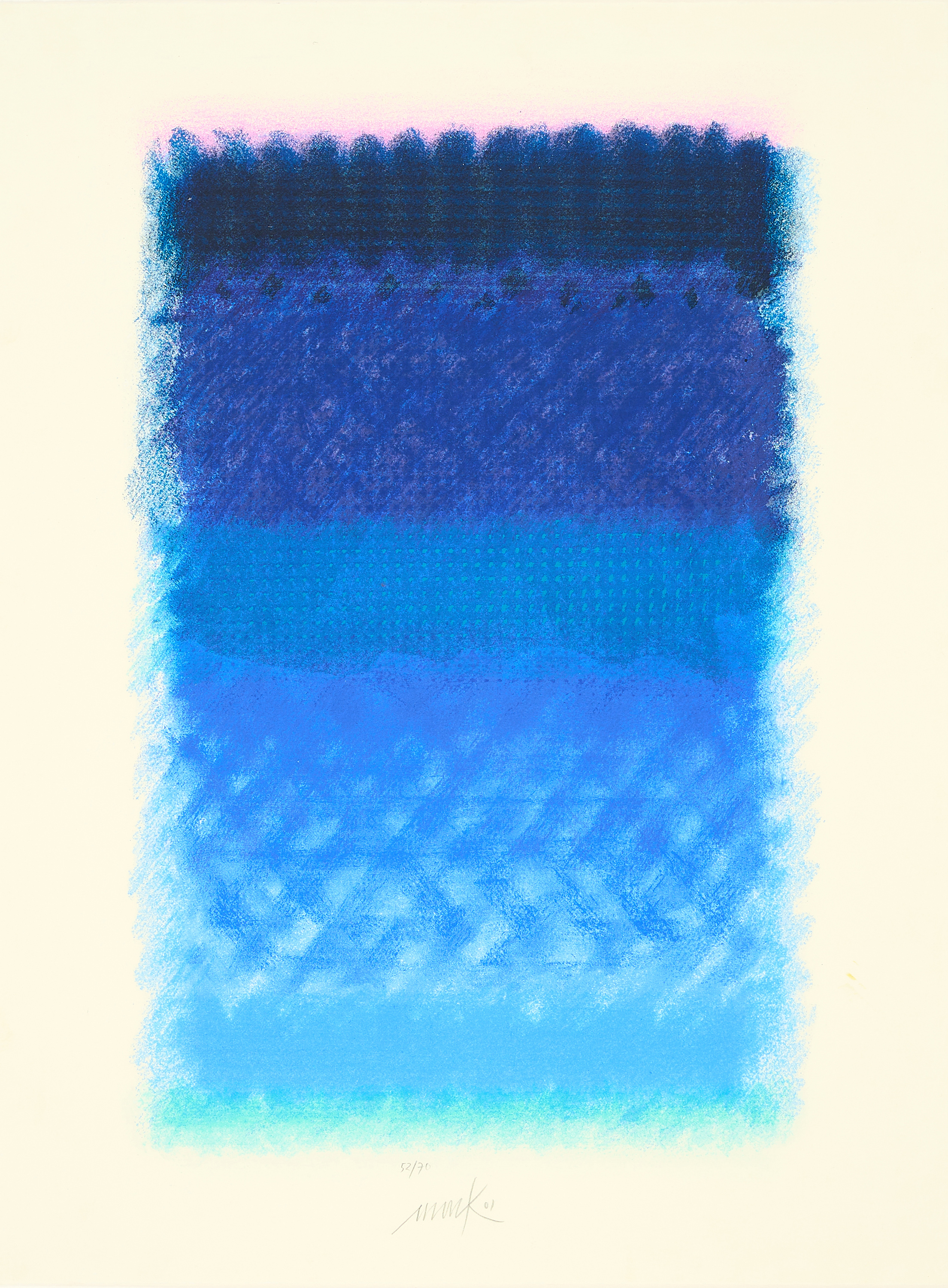 Technik: Farbserigrafie auf Bütten.
