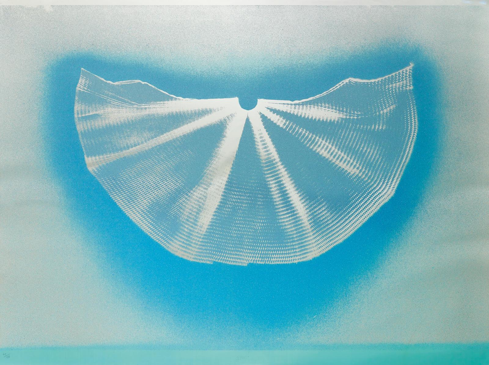 Aura I. 1972. Farbserigrafie auf quecksilberbedampfter Ultraphanfolie. 69 x 96cm (73,5 x 96cm). Signiert und nummeriert. Domberger (Hrsg.). Ex. 42/100. Rahmen.