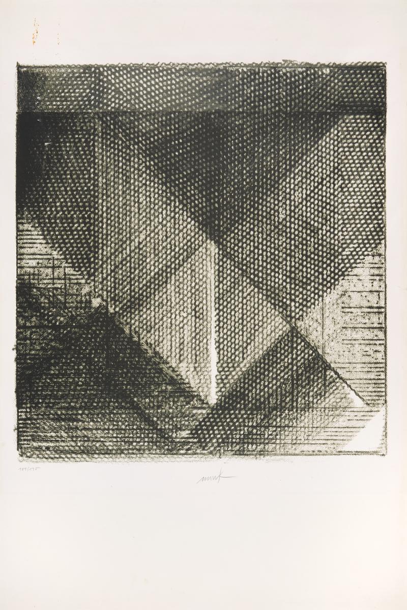 Lichtgitter. 1981. Serigrafie auf Kupferdruck-Bütten. 63,5 x 59cm (97,5 x 65,5cm). Signiert und nummeriert. Prent-Edition, Niederlande (Hrsg.). Ex. 189/195. - Minimale Vergilbung in den Randbereichen. Verso leichte Verschmutzungen. Umlaufend Reste alter Montierung.