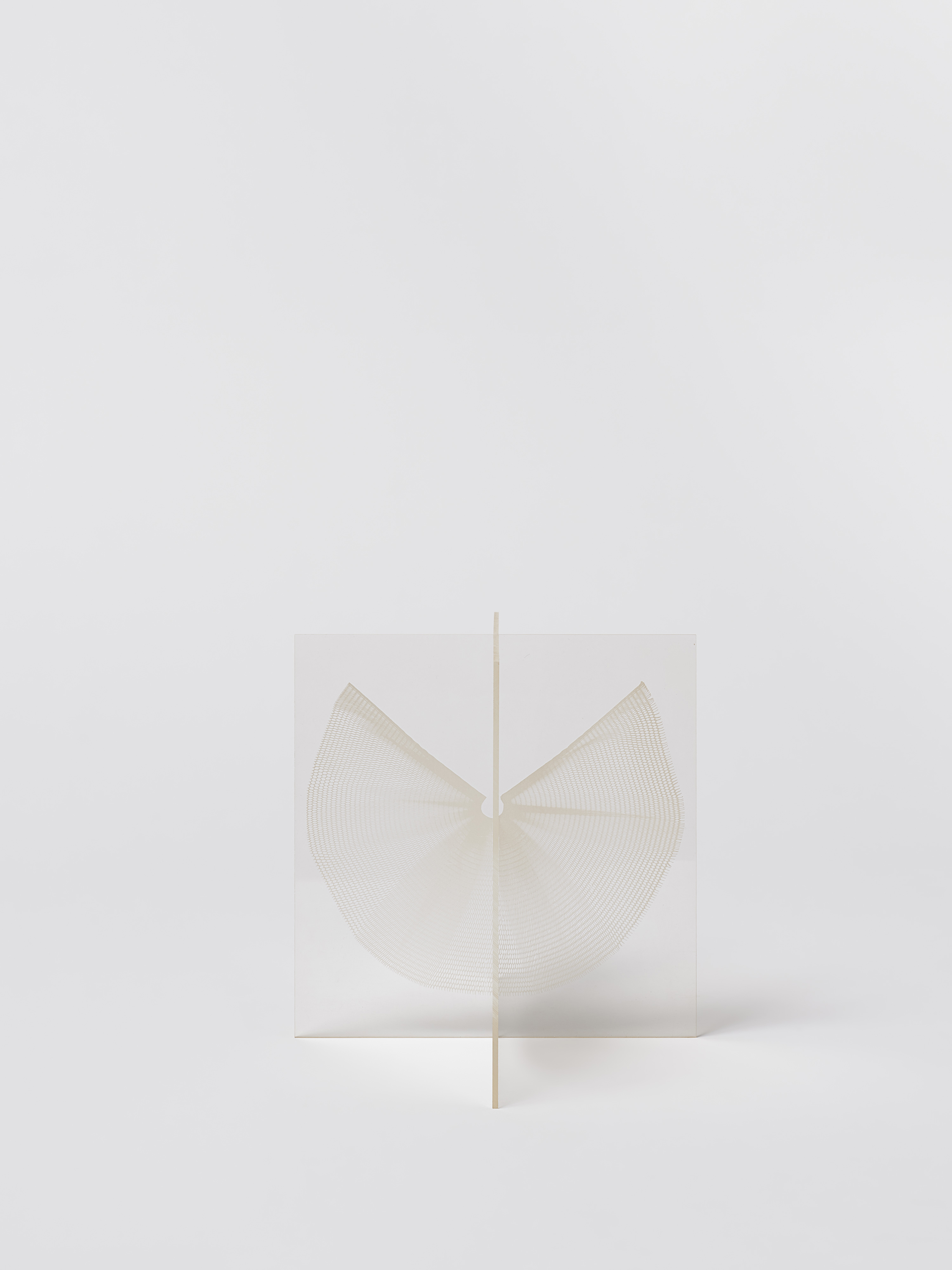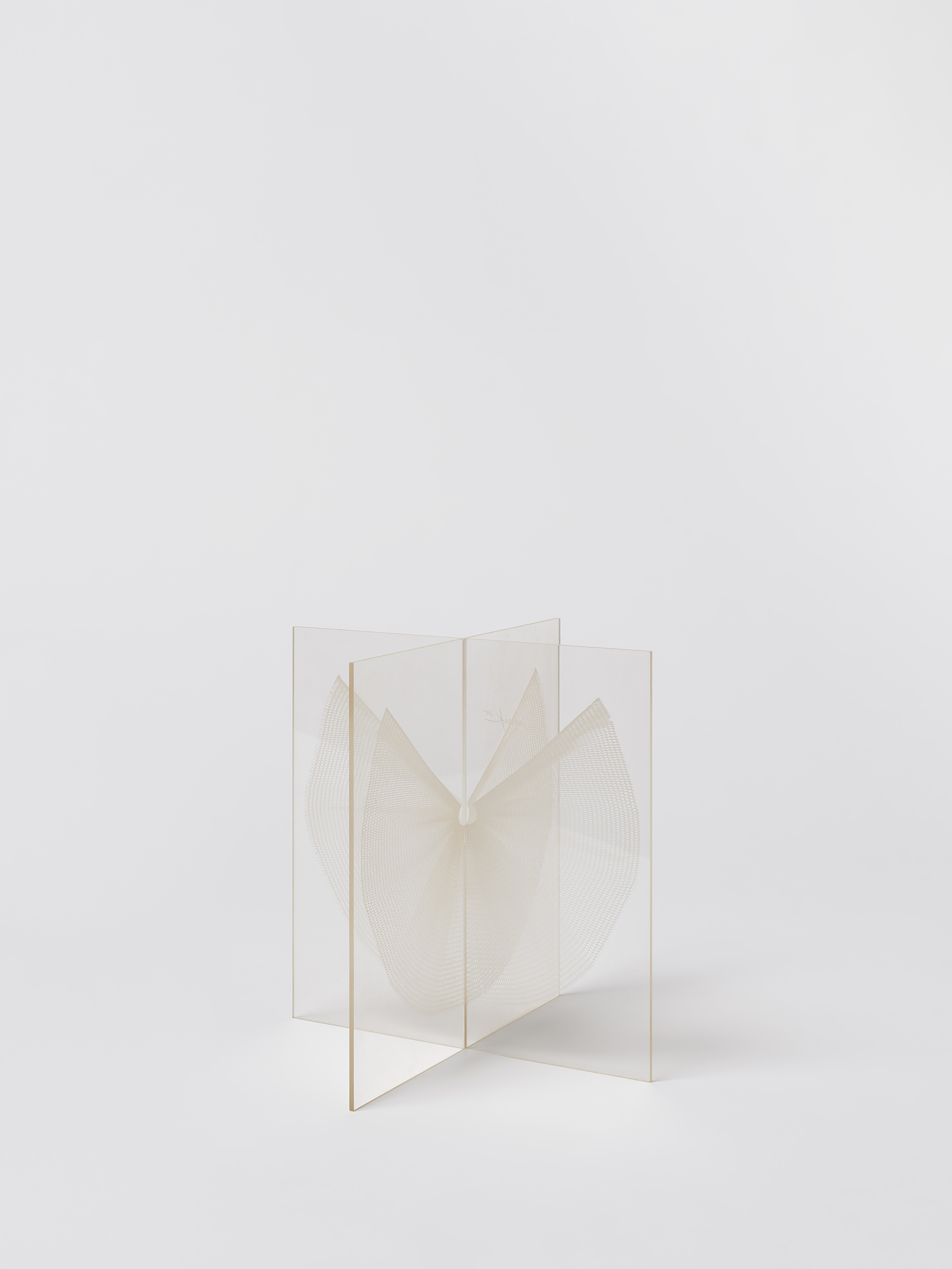 Technik: Farbserigrafie auf zwei ineinandergesteckte Plexiglasplatten.