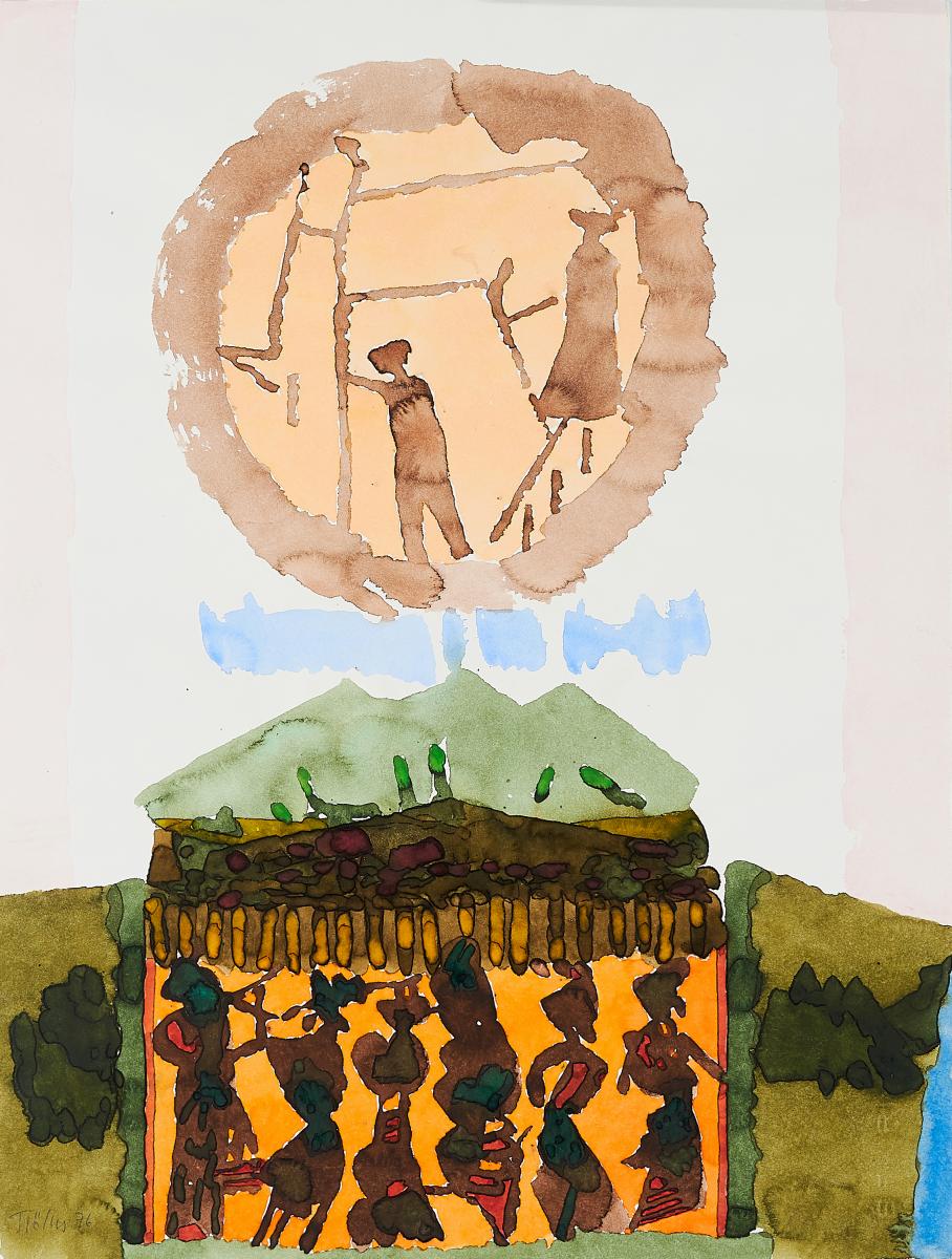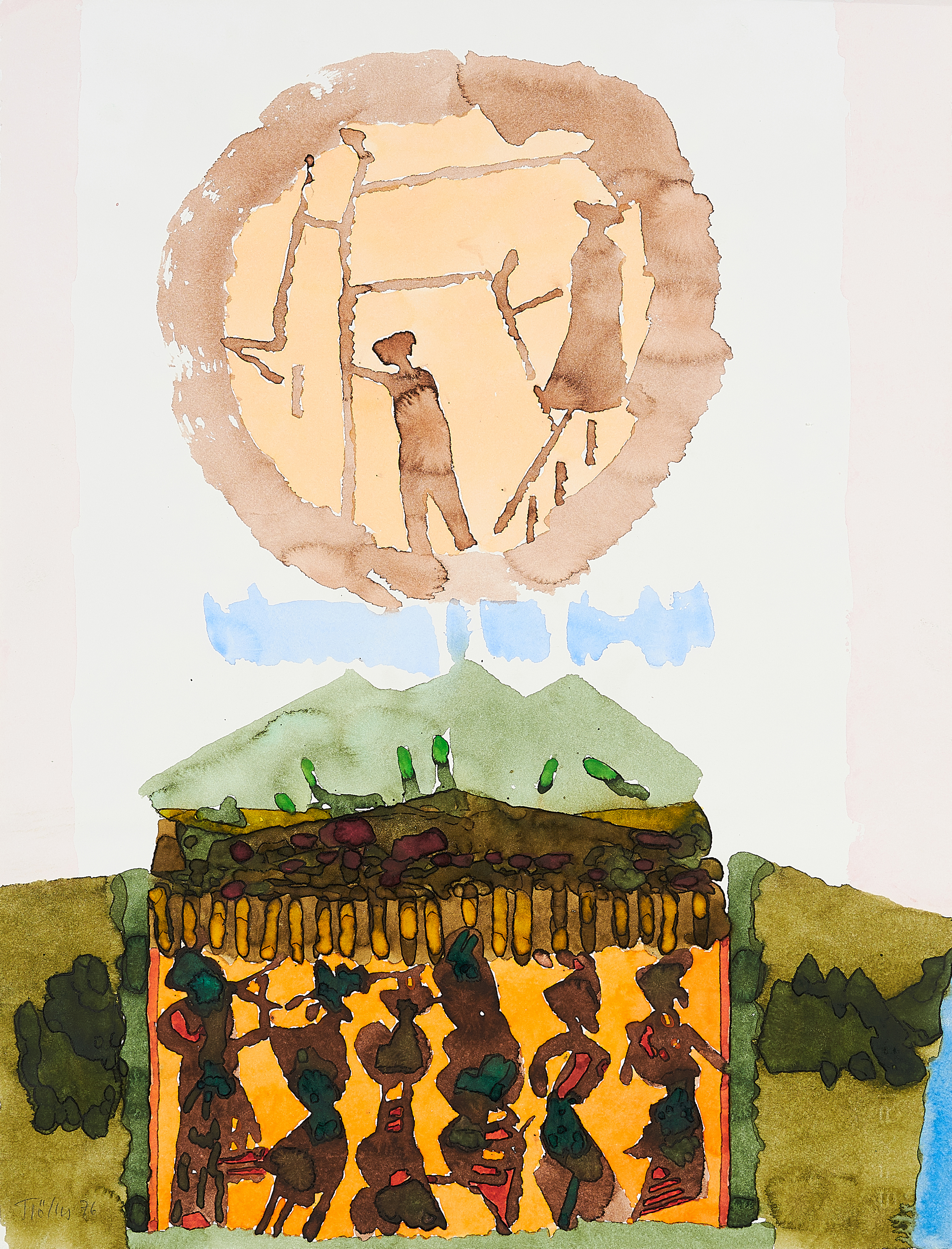 Bezeichnung: Signiert und datiert unten links: Trökes 76. Verso datiert und betitelt: 7.5.76 "SPIELFIGUREN".