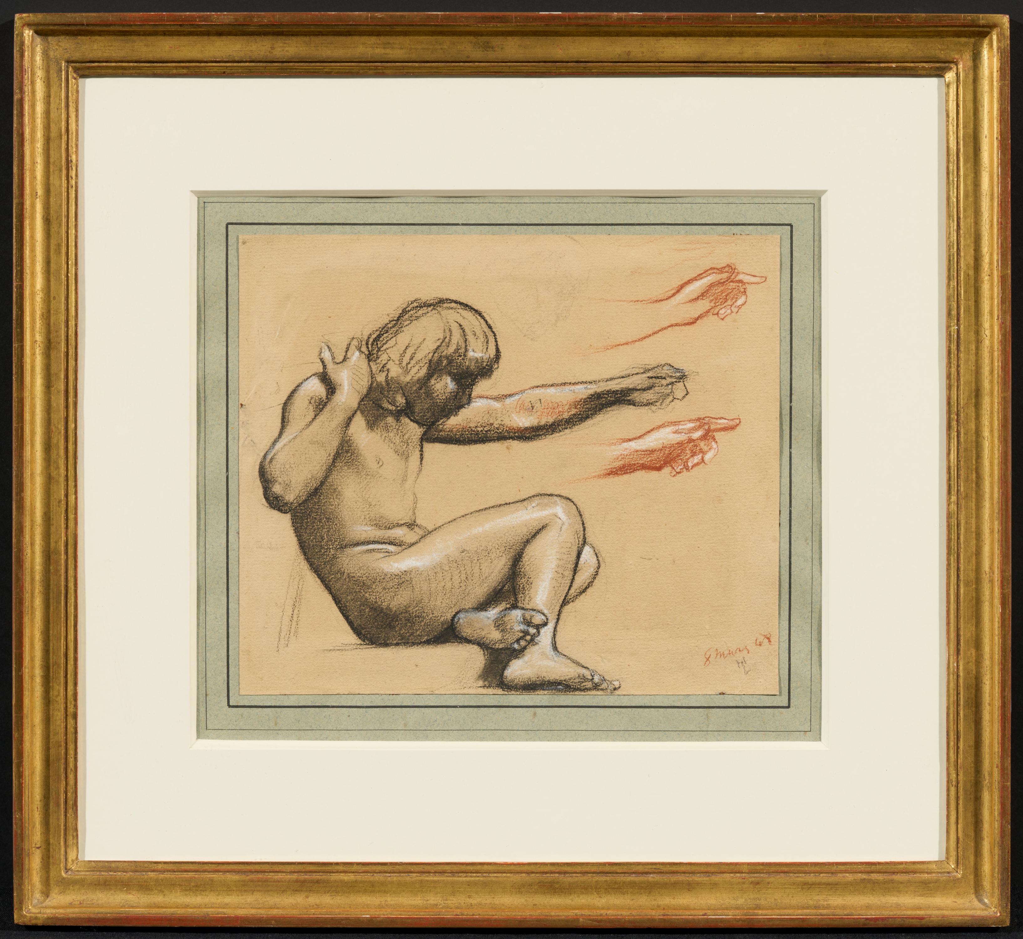 Technik: Kohle und Rötel, weiß gehöht auf Papier.