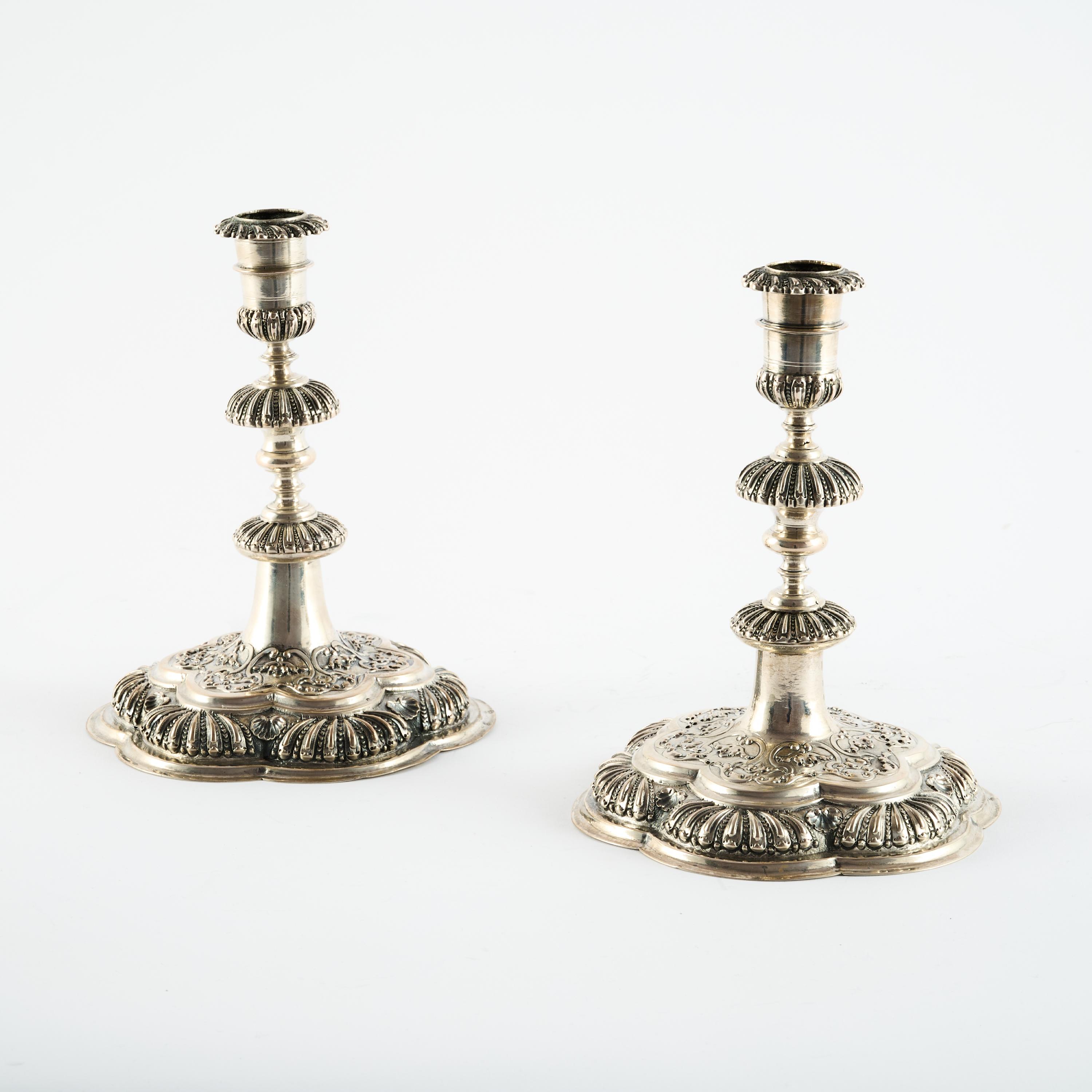 Beschreibung: Jeweils sechspassiger Rundfuß mit getriebenen Pfeifen, Jakobsmuscheln und auf der