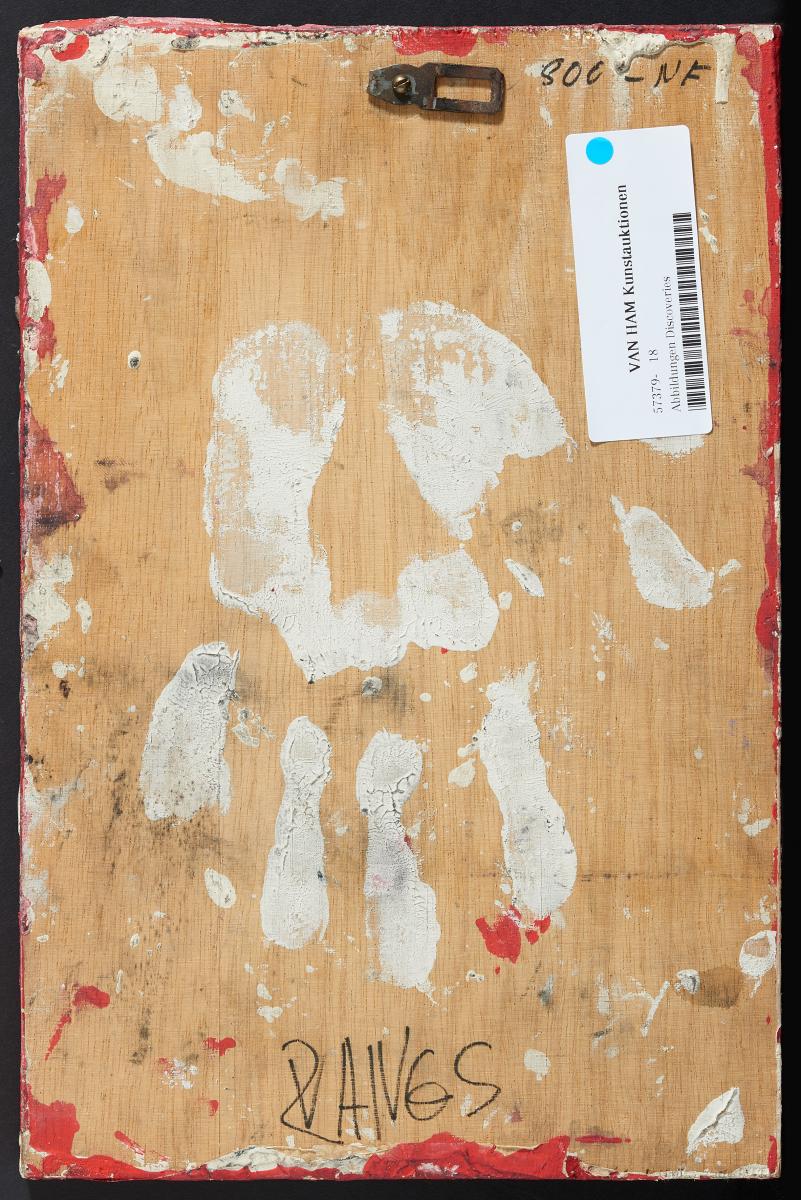Ohne Titel. 1962. Mischtechnik auf Holz. 33 x 22cm. Signiert und datiert in der Darstellung rechts: ZANGS 62. Nochmals signiert verso unten Mitte: ZANGS. Hier oben rechts bezeichnet: 800-NF.