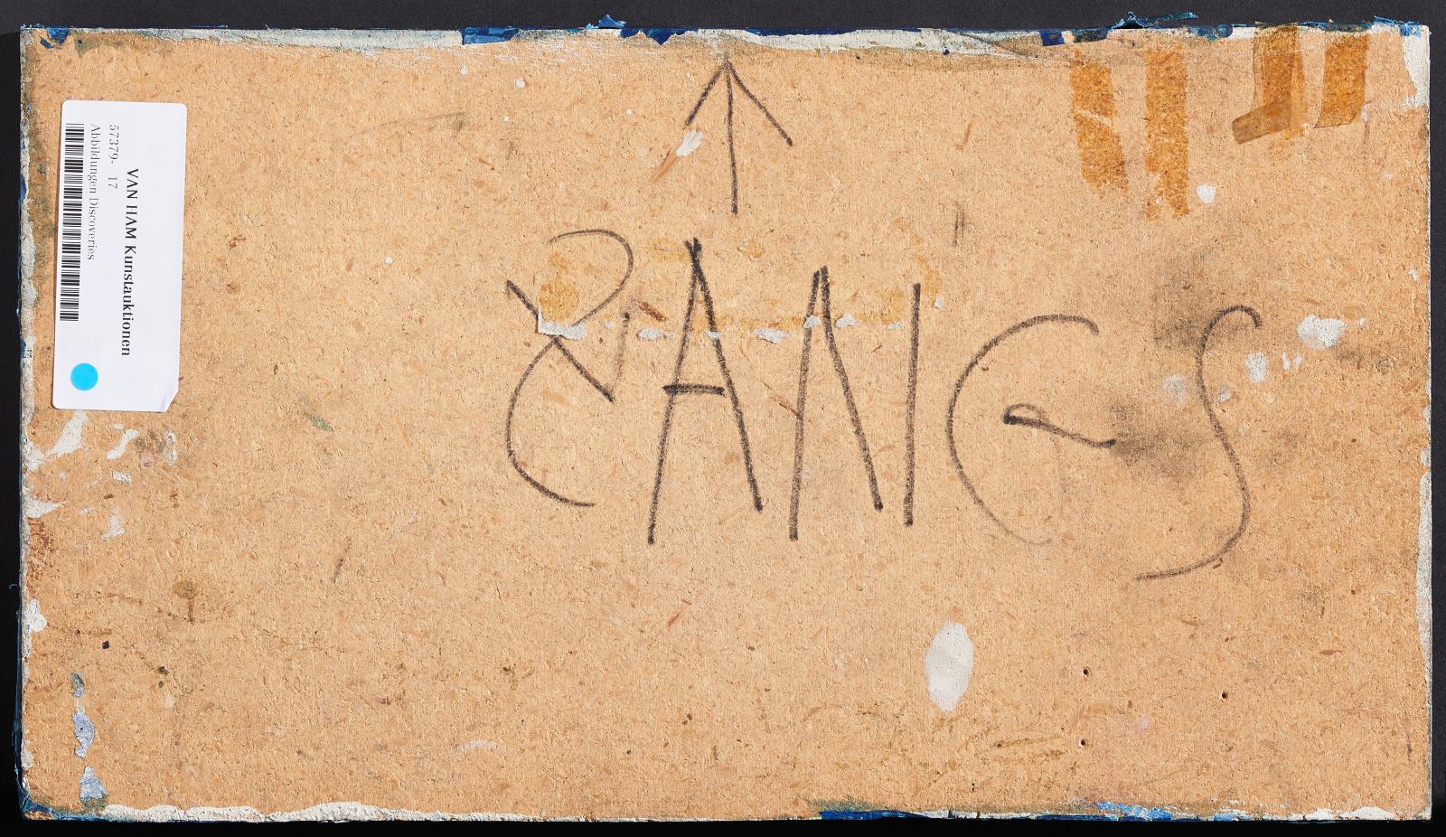 Ohne Titel. Mischtechnik auf Holz. 23 x 40,5cm. Signiert verso Mitte: ZANGS.