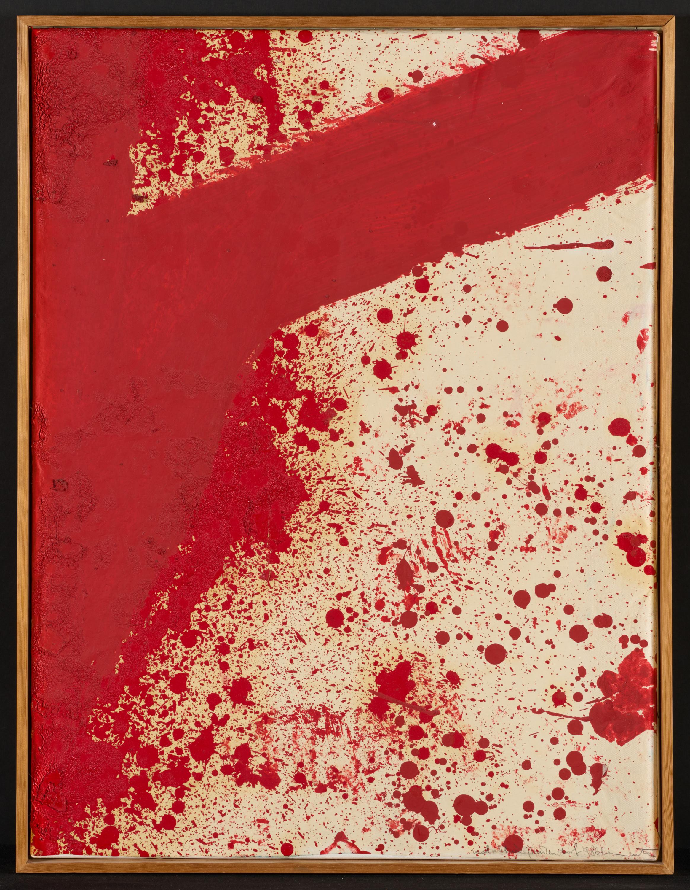 Bezeichnung: Bezeichnet, datiert und signiert unten rechts: malaktion prinzendorf 1986 Hermann Nitsch.