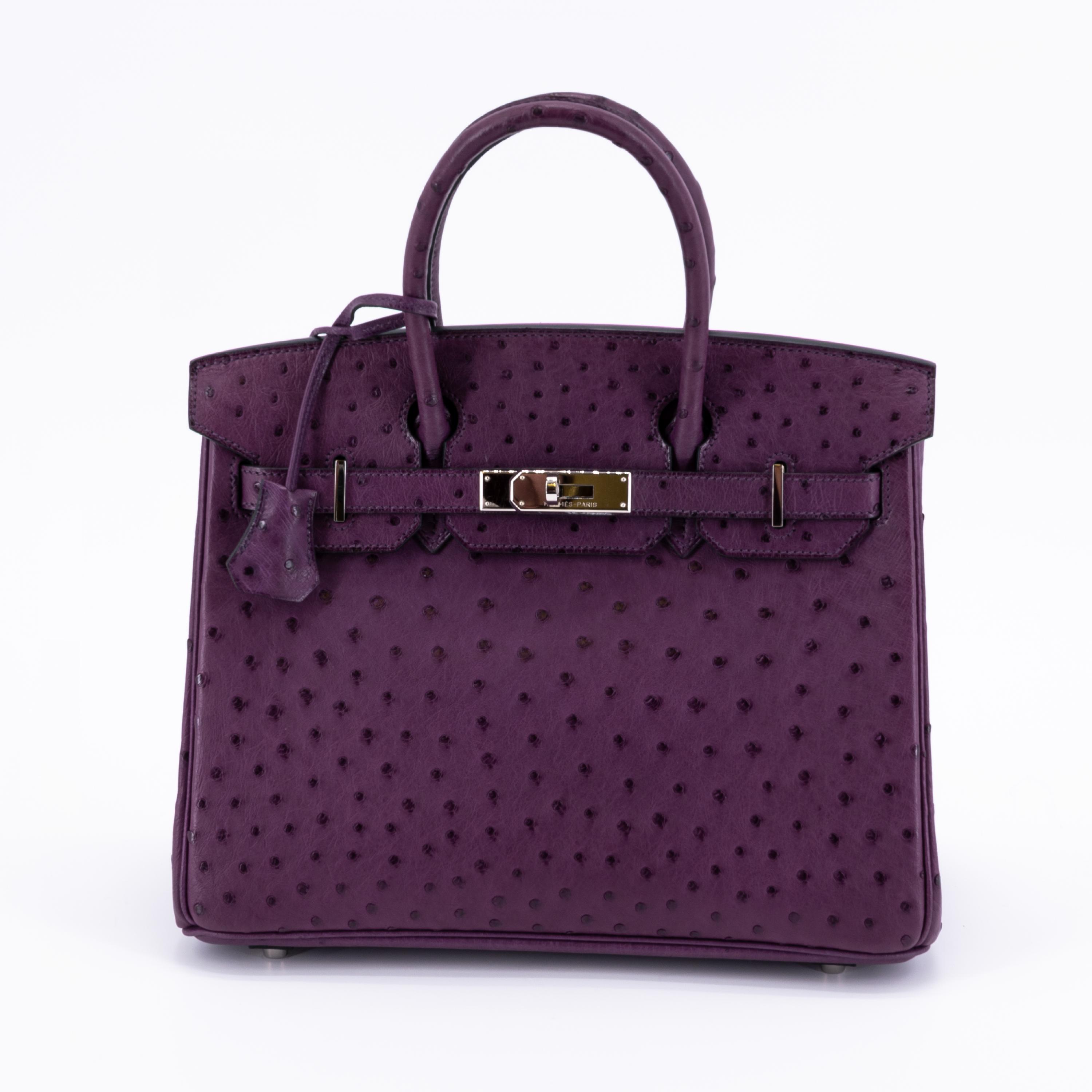 Material: Violett-farbenes Straußen Leder, silberne Beschläge.
