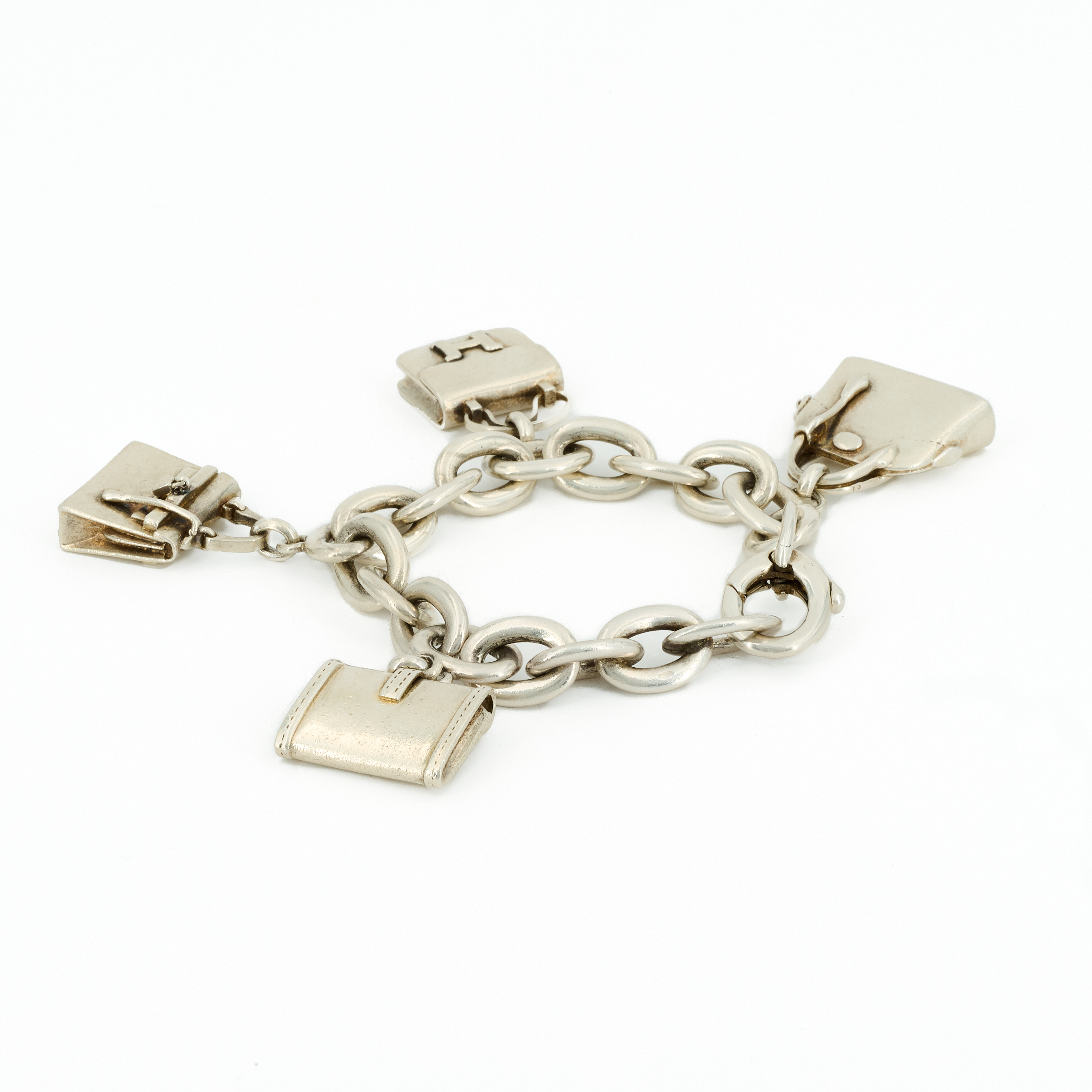 Beschreibung: Silbernes Bettelarmband "La Ronde des Sacs" bestehend aus ovalen Ösen, versehen mit vier