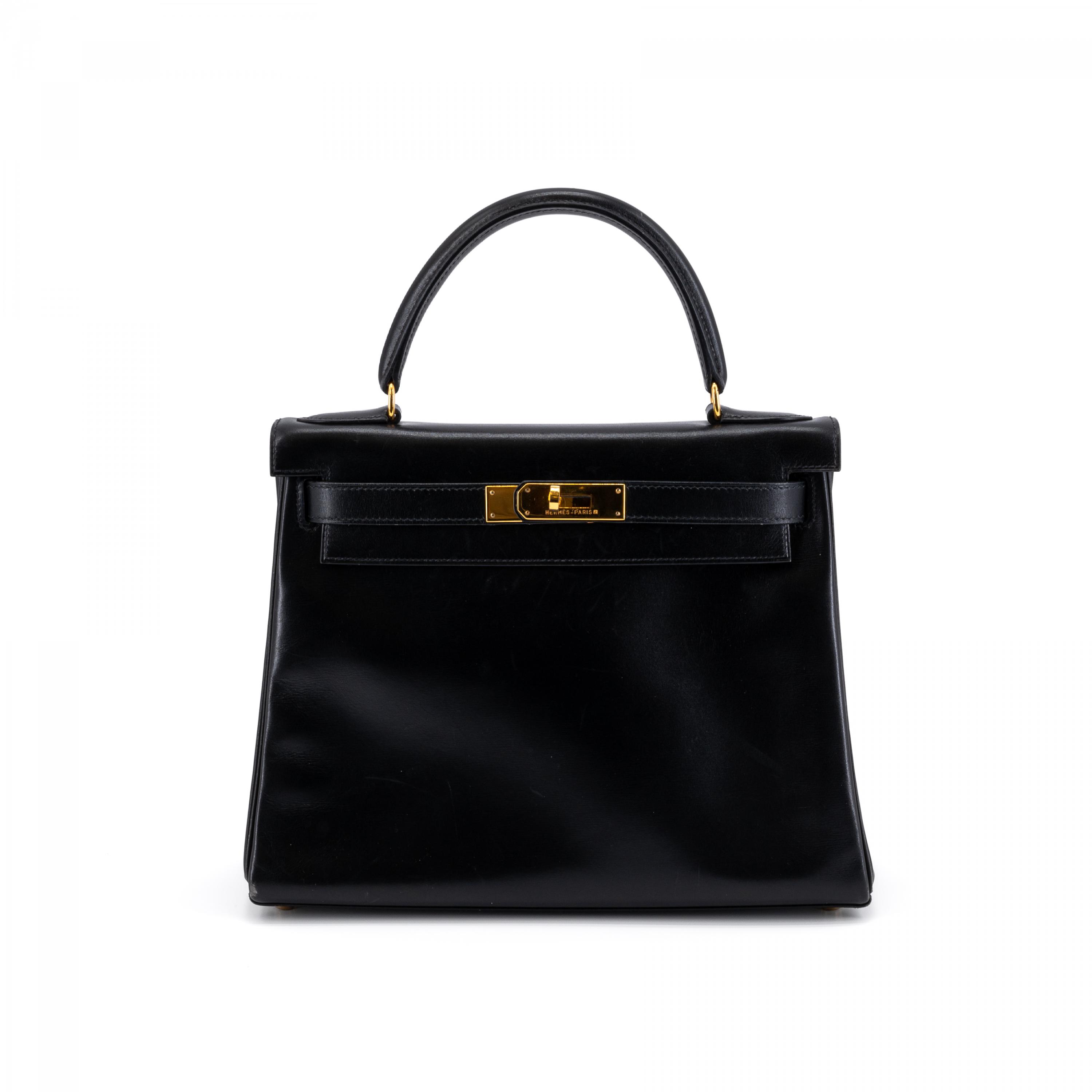 Material: Schwarzes Box-Kalbsleder, goldfarbene Beschläge.