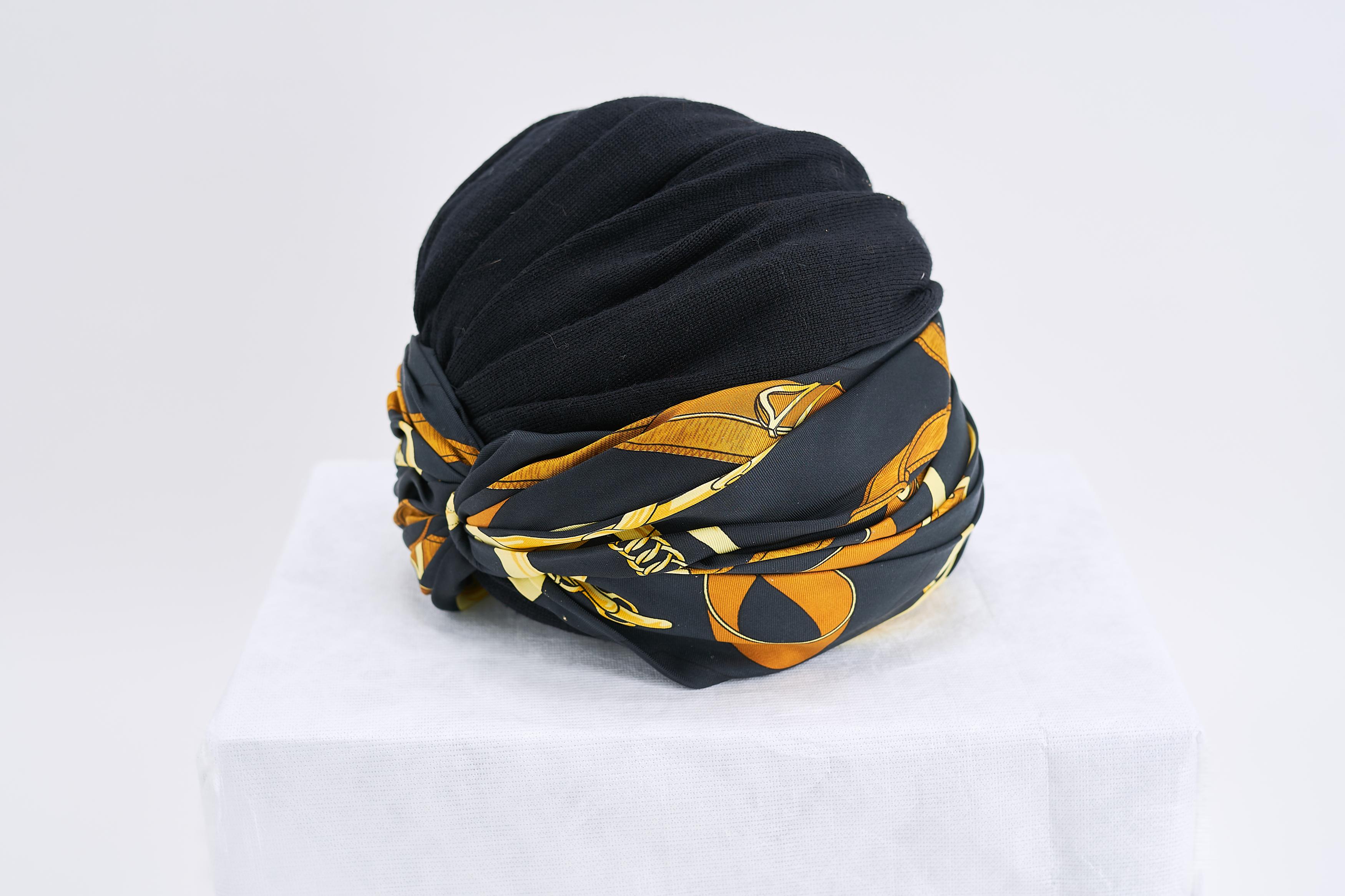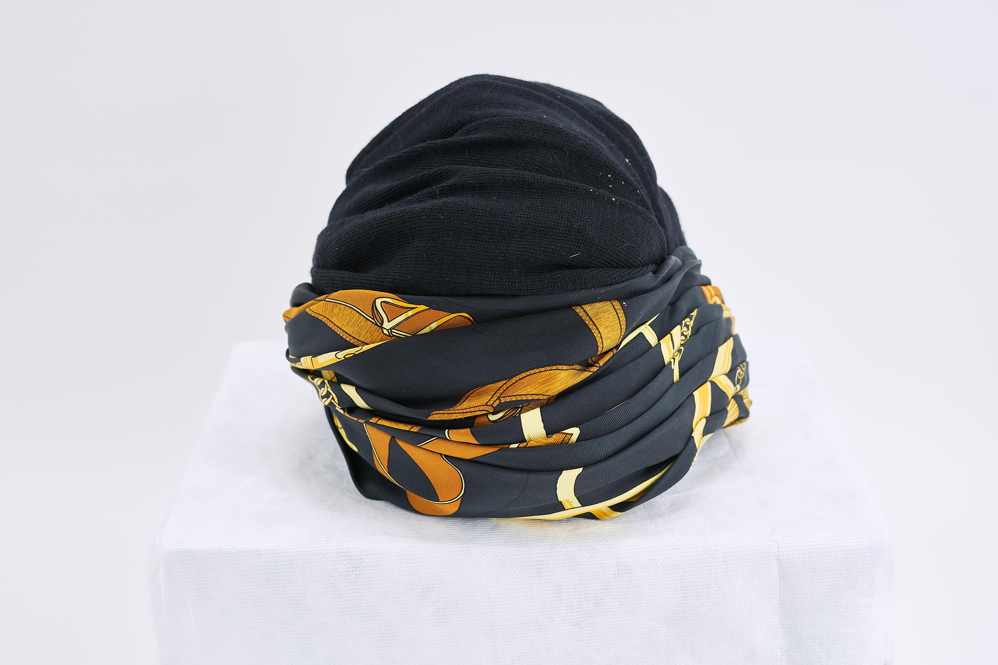 Material: schwarz, gelb/goldfarbene Seide und Wolle.